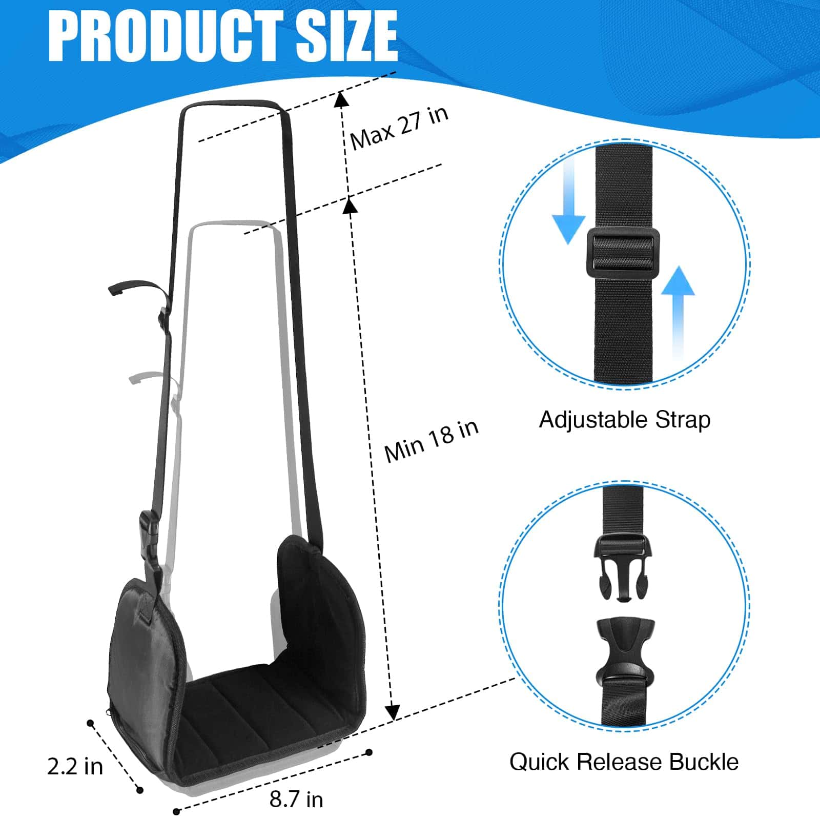 3. Material de Calidad – Hecho de espuma viscoelástica premium y telas flocadas suaves, esta hamaca para pies de avión hace que tus pies y piernas se sientan más cómodos. También cuenta con un respaldo de tela impermeable de oxford y correas de nylon ajustables de alta densidad. Tiene una estructura resistente y una capacidad de carga fuerte. El rango ajustable es de 17 pulgadas a 34 pulgadas, adecuado para viajeros de diversas alturas.