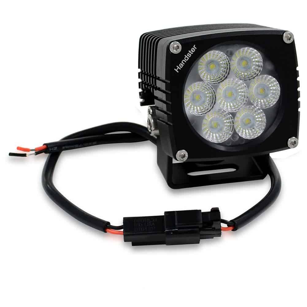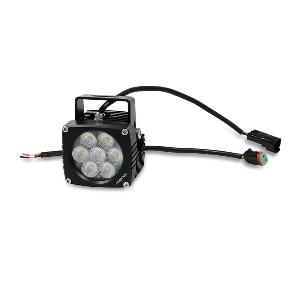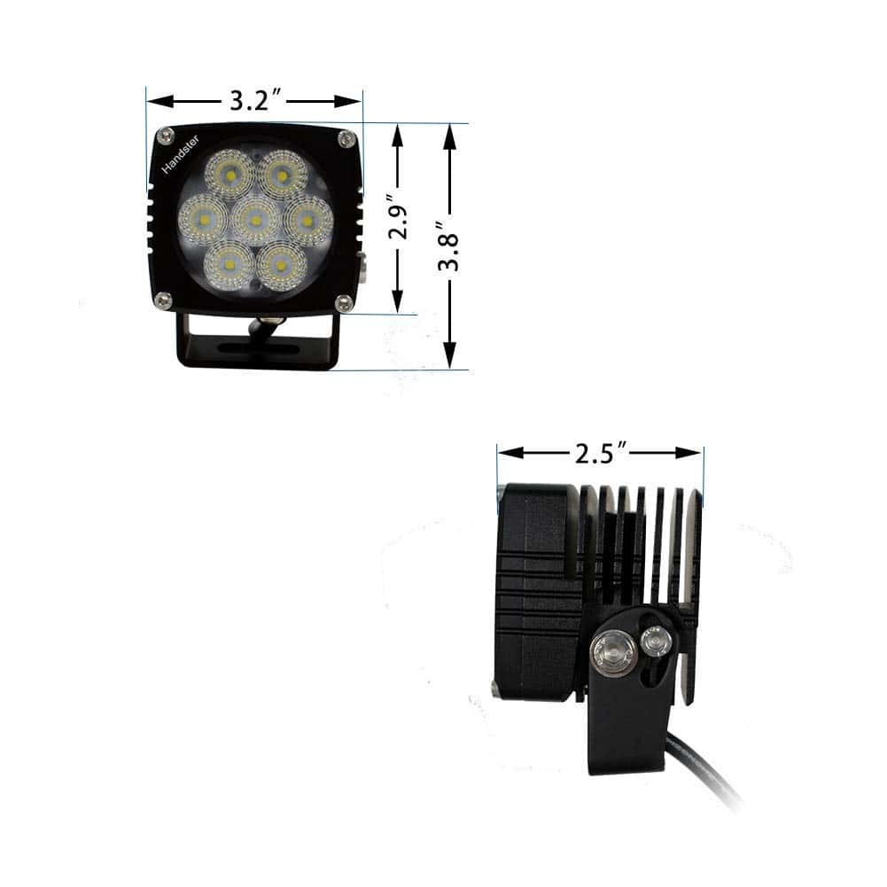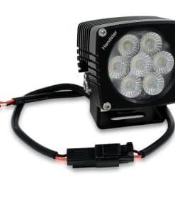2 luces LED de conducción de inundación con soporte, tornillos y 2 cables con conectores macho DT.