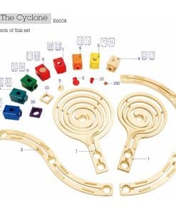 Hape Quadrilla es un sistema de construcción de canicas de madera de alta calidad. Brinda TIEMPO DE CALIDAD para que toda la familia juegue junta. El MEJOR REGALO para tus seres queridos. Brinda infinitas posibilidades creativas de construcción y fomenta el pensamiento espacial y la resolución de problemas. Cada uno de los siete bloques de colores diferentes tiene una función diferente y es el único sistema de canicas cinético del mundo. El Ciclón ha ganado el Premio Spiel Gut (Buen Juguete) y el Premio Platino del Portafolio de Juguetes Oppenheim. Proporcionando más de mil horas felices de juego, Quadrilla vale cada centavo. Todos los sets de carreras de canicas Quadrilla están hechos con madera de abedul y caucho de calidad heredada para una diversión duradera con carreras de canicas. Los acabados de juguetes de Hape son todos no tóxicos, seguros para los niños y de la más alta calidad. Hape construye sus juguetes usando productos de madera acreditados por FSC. Los juguetes de Hape estimulan a los niños en cada etapa de desarrollo y ayudan a nutrir y desarrollar sus habilidades naturales. Todos los productos de Hape cumplen o superan todas las normas de seguridad aplicables. Este set de 198 piezas incluye canicas, rieles curvos, dos embudos en espiral y diez aceleradores. El Ciclón es el set más grande de Quadrilla. Dos embudos en espiral, 12 rieles curvos y 10 aceleradores potenciadores inspiran a los constructores a diseñar la máxima carrera de canicas. El Ciclón es una confusión mareante de curvas, espirales y caídas que harán que tus canicas pasen por una carrera de canicas frenética. Al igual que con otros sets de construcción de carreras de canicas de Hape Quadrilla, se combina fácilmente con otros productos de Hape Quadrilla para expansión y combinaciones únicas que mejorarán la experiencia de juego de tu hijo.