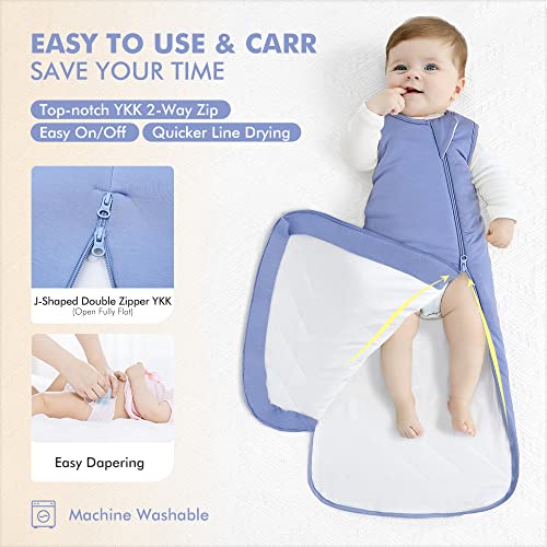 Ideal para el Sueño del Bebé: Nuestros sacos de dormir están hechos de Bambú de Rayón de bosques responsables (Certificación FSC), que es suave como la mantequilla, hipoalergénico, termorregulador, que absorbe la humedad y sostenible, ayudando a mantener a su bebé cómodo y seco. Fácil de Usar y Cuidar: Cremallera YKK de 2 Vías en forma de J se abre completamente plana o desciende la mitad inferior para cambios de pañal más fáciles y secado más rápido en línea. Nuestra manta usable para bebé es lavable a máquina. Espacioso y de Uso Prolongado: Espacio extra para piernas / longitud para patear (saludable para las caderas) y espacio para crecer, pero no se puede patear. Calificación TOG de 1.0 para el clima perfecto durante todo el año. Costuras y acolchados reforzados para mayor durabilidad. Seguridad por Encima de Todo: Protector de cremallera para proteger la cara del bebé de la irritación. Aberturas de brazos y cuello dimensionadas con la última investigación. Telas seguras probadas contra más de 1,000 sustancias para los estándares más altos. Gran Idea para un Baby Shower: Esta bolsa de dormir con calidad superior, color unisex la convierte en una gran idea para cada pequeña niña o niño. Talla S para 0-6 meses, M para 6-18 meses, L para 18-36 meses (2t – 3t).