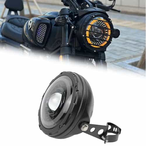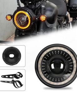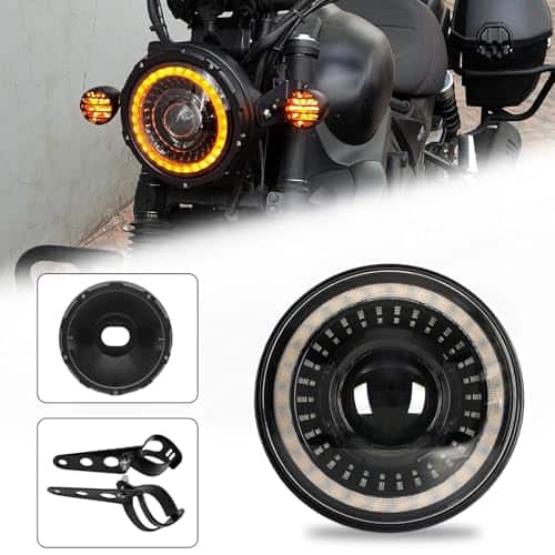 3. Carcasa de Faro LED de 7 Pulgadas con Inicio Blanco/Ámbar con carcasa de lámpara de aleación de aluminio, se ajusta a la mayoría de los modelos de motocicletas con tubo de horquilla de 32-40 mm, fácil de instalar, no es necesario perforar, también para otros modelos de motocicletas que deseen actualizar de 5.75 a 7 pulgadas.