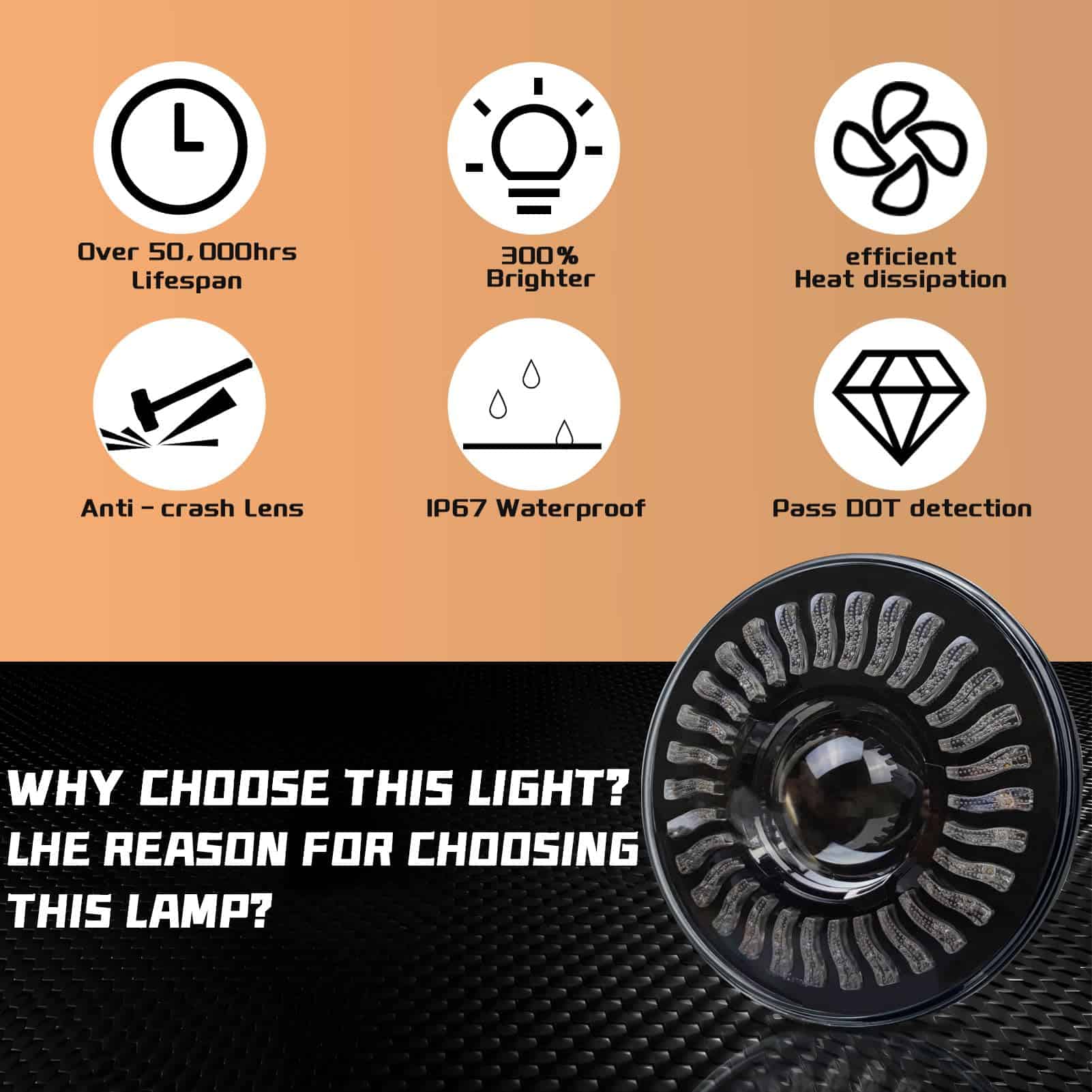 2. Haz brillante y amplio que ilumina toda la carretera. El faro de 7 pulgadas tiene DRL blanco o DRL ámbar, elija uno según su necesidad.
