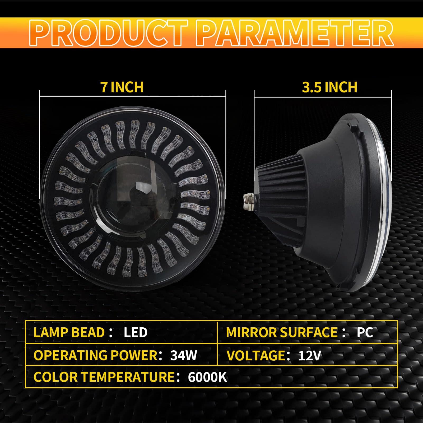 HARPUOU Faro Led de 7 pulgadas para Motocicleta con Halo de