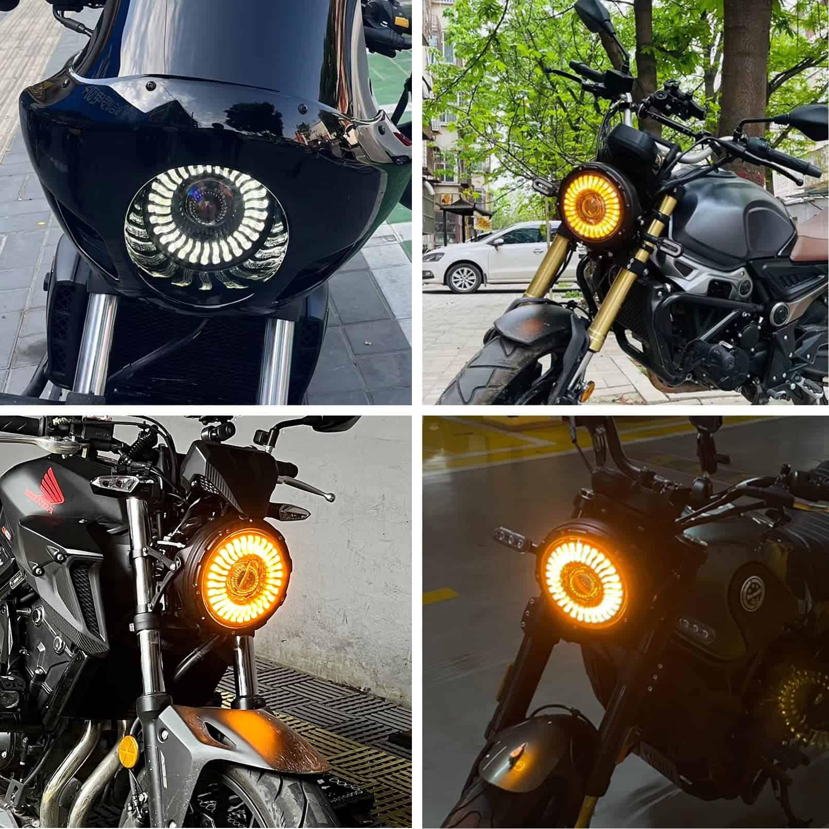 1. FARO LED de 7 pulgadas con diseño único de Halo de flor compatible con motocicletas y autos que se ajusta a faros de 7″. Si lo instala en una motocicleta, puede elegir el DRL blanco o el DRL ámbar según sea necesario. Si lo instala en autos, compre 2 piezas, color blanco como DRL, ámbar como luz de giro.
