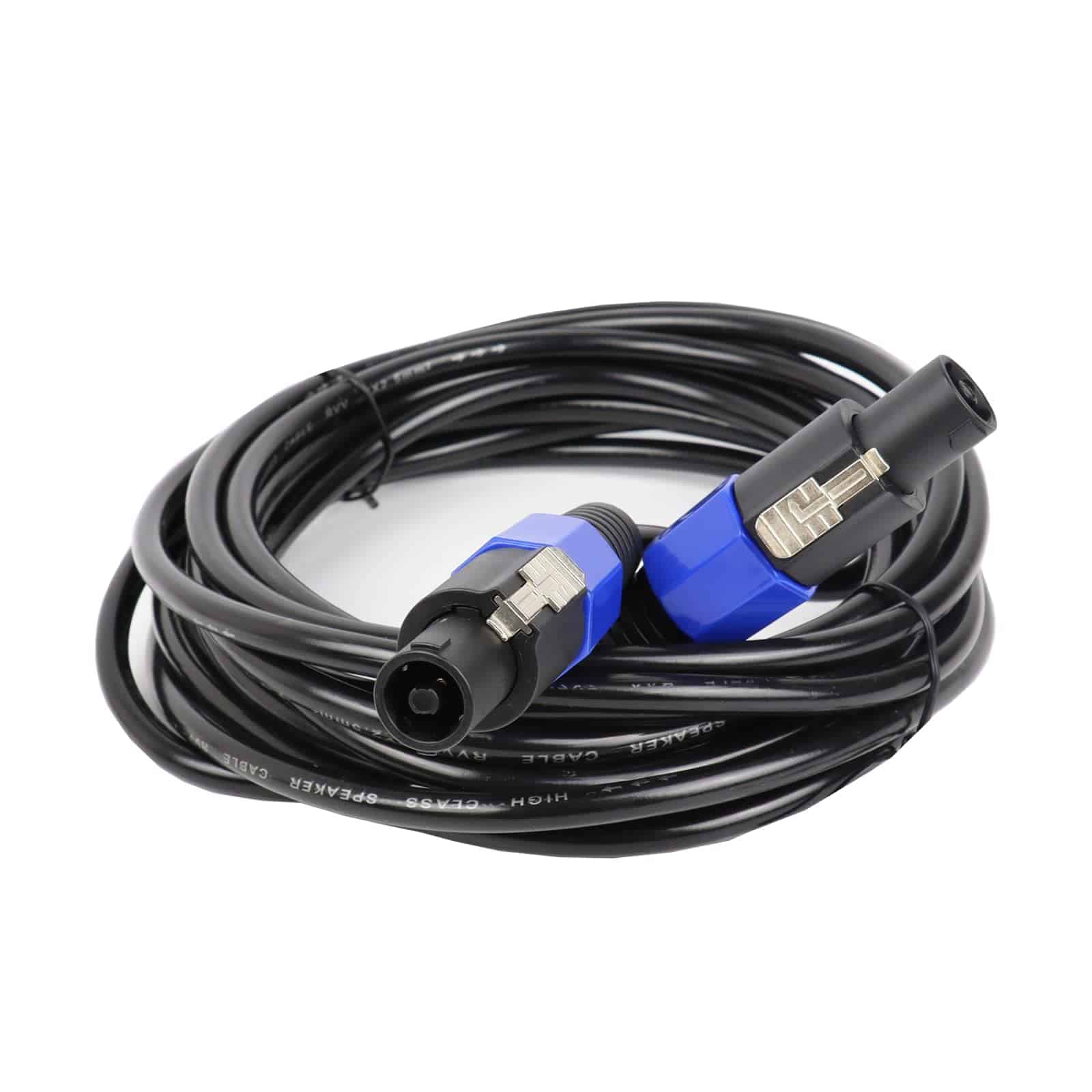 1. Conectores Capaces de Alto Corriente Cable Speakon cuenta con conector tipo NL4FC en ambos extremos que tienen dos juegos de pines (+1, -1; +2, -2). Nuestro cable está cableado con +1 y -1 como cable positivo y negativo. El adaptador circular negro y azul hace que la configuración sea fácil.