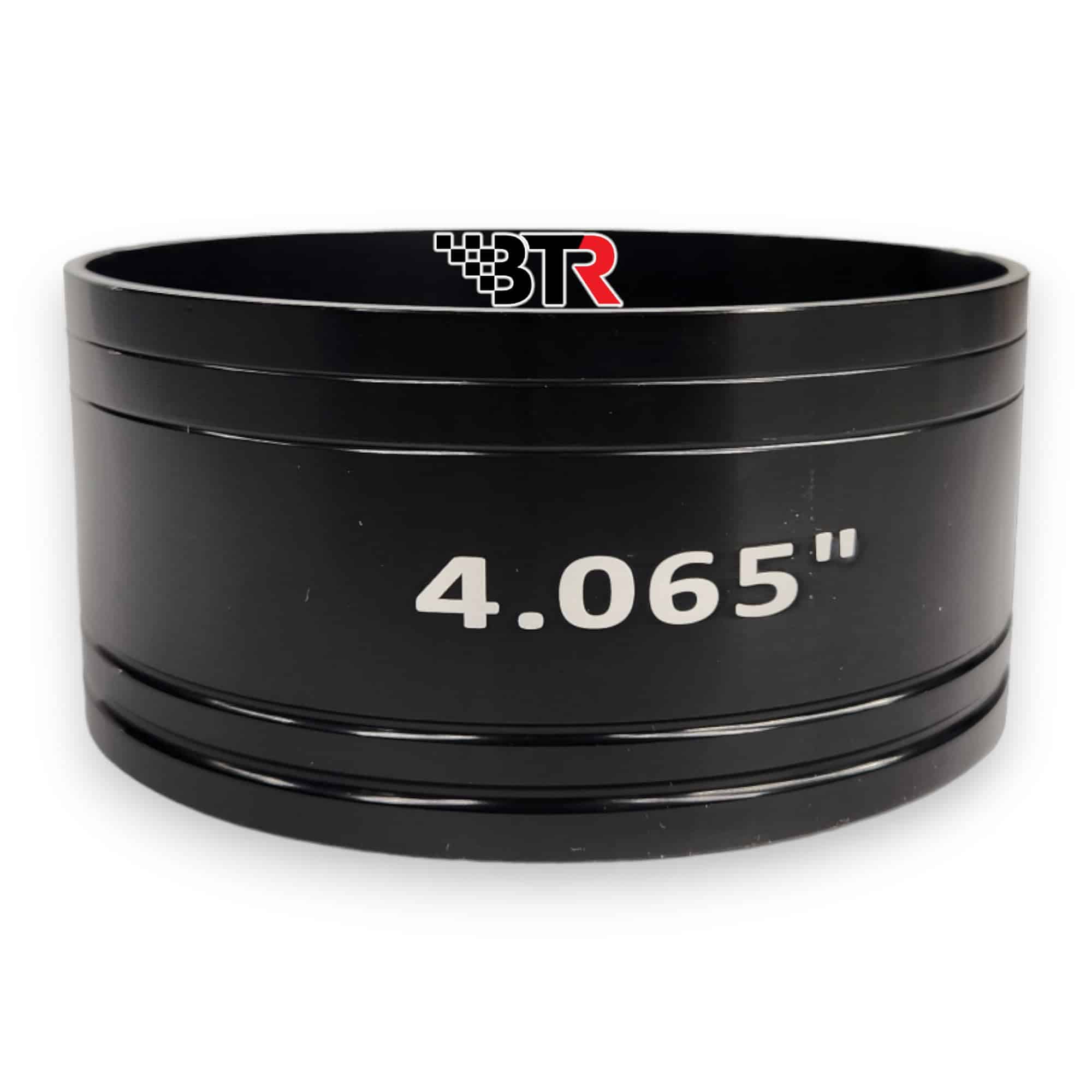 La herramienta compresora de anillos de pistón BTR Brian Tooley Racing LS 4.065 bore se adapta a 4.065 bore de LS3 L99 LS9 L92 K9H L94. Los compresores de anillos de pistón de aluminio de una pieza han estado disponibles por algún tiempo, pero BTR ha mejorado significativamente el diseño. En lugar de depender de la falda del pistón para localizar los pistones al ser insertados en el bloque, como lo hacen los compresores de anillos de una pieza actuales en el mercado, los nuevos compresores de BTR tienen un pequeño pero muy importante chamfer inverso en la parte inferior que encaja en el chamfer en la parte superior del bloque, lo que cumple dos funciones. Primero, localiza el compresor de anillos exactamente sobre el centro del agujero. Y, en segundo lugar, reduce la posibilidad de que el anillo de aceite se enganche entre el compresor de anillos y la parte superior del bloque. El grabado láser en un fondo negro es fácil de leer y se ve bien incluso después de muchos usos. En nuestras pruebas beta contra competidores con compresores de anillos cónicos, el BTR fue más fácil de usar y nunca tuvo problemas con un anillo de aceite entre el compresor y el bloque.