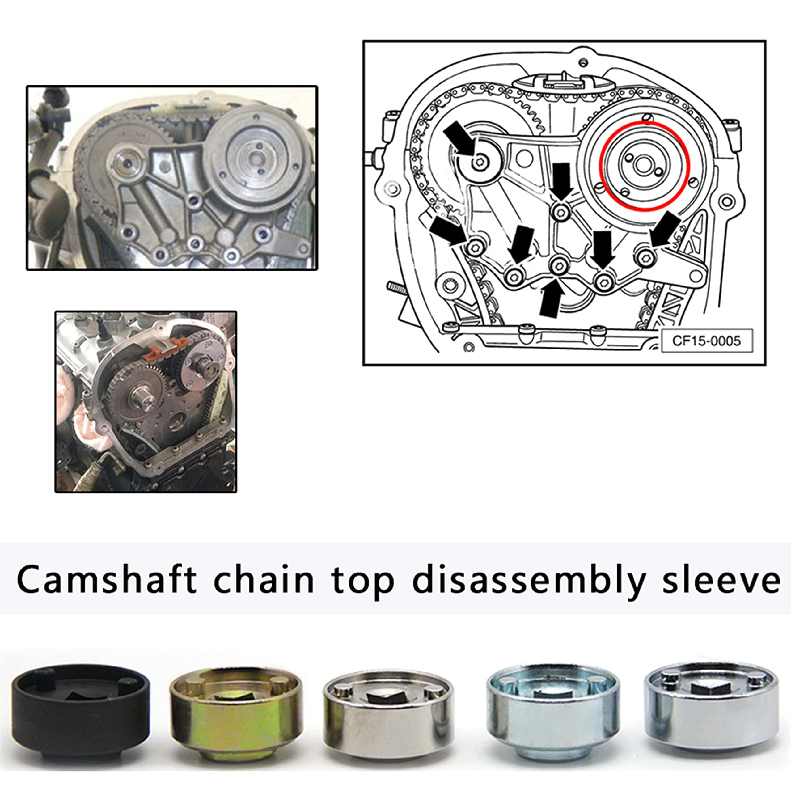 3. Se utiliza para corregir la posición de sincronización del árbol de levas y cigüeñal. Tiene todo lo necesario para realizar el reemplazo de la cadena de distribución. También es una herramienta especial para el reemplazo de la cadena de distribución. El conjunto de 28 piezas es más completo para la reparación y mantenimiento del motor.