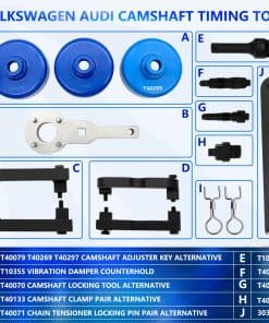 La herramienta de alineación de sincronización de árbol de levas de motor es una herramienta diseñada específicamente para Volkswagen Audi A6 A7 A8 2.4 2.5 2.8 3.0T 4.2 4.0L TFSI. Este kit contiene un conjunto de herramientas de bloqueo de árbol de levas para alineación y ajuste de sincronización del motor. En comparación con productos similares anteriores, el kit ZKTOOL agrega un juego de herramientas de alineación de árbol de levas de motor 2.5, 2.8, 3.0T y dos ajustadores de árbol de levas T40269 T40070, cubriendo una gama más amplia de modelos de motor. Compatible con una amplia variedad de motores Volkswagen y Audi, incluidos Golf, Jetta, Beetle, New Beetle, Bora, Passat, Vento, A6, A5, A4, A3, A2 FSI, entre otros. A pesar de no ser la herramienta original, este conjunto de herramientas ha sido probado en múltiples ocasiones y ofrece una alternativa mejor y más asequible a las herramientas originales. Brindamos un servicio completo y profesional, con garantía y servicios de devolución. Contacta con KTTOOL para obtener más información o asistencia en línea las 24 horas del día.