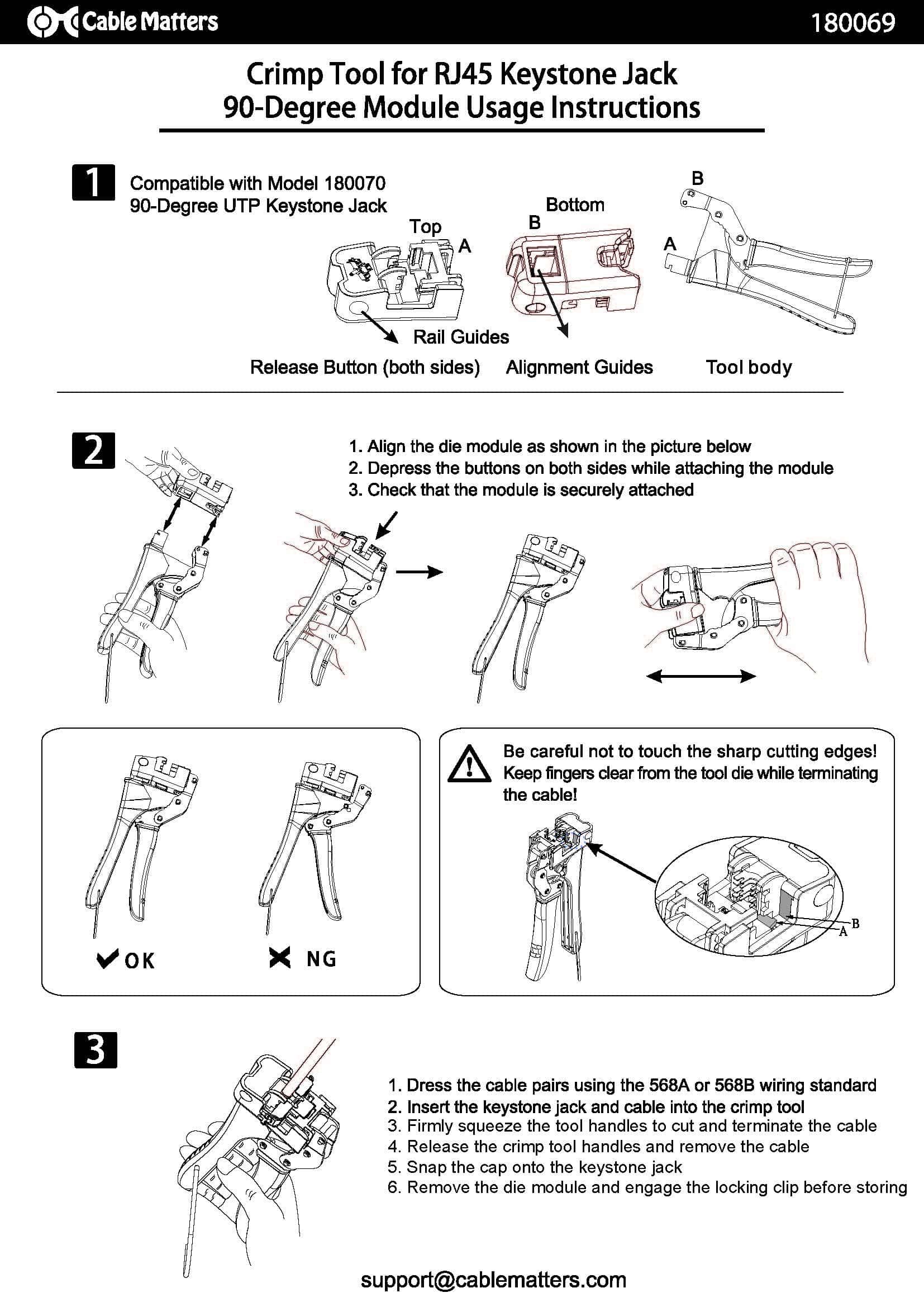 ¡CONÉCTESE MÁS con los productos de redes de Cable Matters! La Herramienta de Crimpado RJ45 de Cable Matters está diseñada específicamente para terminar nuestros Keystone Jacks de Perfil Delgado de 90 grados (ASIN B06Y8T7NSH). Termine rápidamente y con precisión keystone jacks para una red Gigabit Ethernet de alto rendimiento.br br ¡Diseño ergonómico con un trinquete para reducir los problemas de red causados por terminaciones descuidadas! Termine cada cable como un profesional con menos tiempo y esfuerzo que usando una herramienta de impacto 110 o Krone. ¡Un de esta herramienta está incluido para su tranquilidad al comprar!br br ESPECIFICACIONESbr – Largo/Ancho de la Herramienta: 8.5 / 3-4 pulgadasbr – Peso de la Herramienta: 14 onzasbr – Inserto del Matriz (La x An x Al): 3.5 x 2.2 x 1.9 pulgadasbr – Peso del Matriz: 1.9 onzasbr – KJ Compatible: SKU 180070br – Cumplimiento: C E, RoHSbr br CONTENIDO DEL PAQUETEbr – 1 x Herramienta de Crimpado para RJ45 Keystone Jacksbr – 1 x Inserto de Matriz Personalizadobr – 1 x Funda de Herramientasbr – 1 x Hoja de instruccionesbr br ¡Garantía! Garantía: 1 año