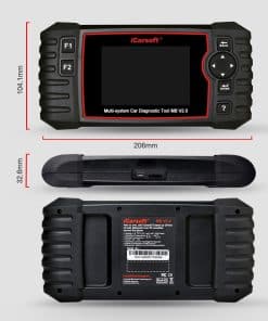 iCarsoft MB V2.0 es una herramienta de diagnóstico de fallas vehiculares profesional y poderosa desarrollada por iCarsoft Technology Inc. Con una pantalla TFT LCD de 4.0 y un software de diagnóstico único, cuenta con diagnóstico completo de ECU de una sola marca de vehículo y los modos de prueba incluyen principalmente: CANBUS, ISO9141, KWP2000 y J1850, etc. Permite a los técnicos diagnosticar con precisión problemas complejos. CATORCE SUPERVENTAJAS Diagnóstico de una sola marca en la mayoría de los modelos (OBDII-16DLC) Diagnóstico de sistema completo Soporte de restablecimiento de servicio de aceite Mantenimiento del sistema de freno de estacionamiento electrónico Regeneración del filtro de partículas diésel Sistema de control del filtro electrónico Particular (DPF) Sistema de control del acelerador electrónico (ETC) Calibración del sensor del ángulo de dirección Leer y borrar códigos de falla Leer datos en vivo Soporte de prueba de batería Soporte de revisión y impresión de datos Actualización de velocidad completa a través de PC Pantalla TFT LCD de 4.0, 480 320 píxeles Soporte multi-idioma ESPECIFICACIONES Pantalla: TFT LCD de 4.0, 480 320 píxeles Temperatura de funcionamiento: 0 C ~ 50 C Temperatura de almacenamiento: -20 C ~ 70 C Voltaje de funcionamiento: 9 ~ 18V Corriente de funcionamiento: 150mA@12V (típico) Consumo de energía: 1.8W (típico) Dimensiones: 206 104.1 32.6 mm (Largo x Ancho x Alto) CONTENIDO: Unidad Principal MB V2.0 Cable Principal Cable de Datos Manual del Usuario