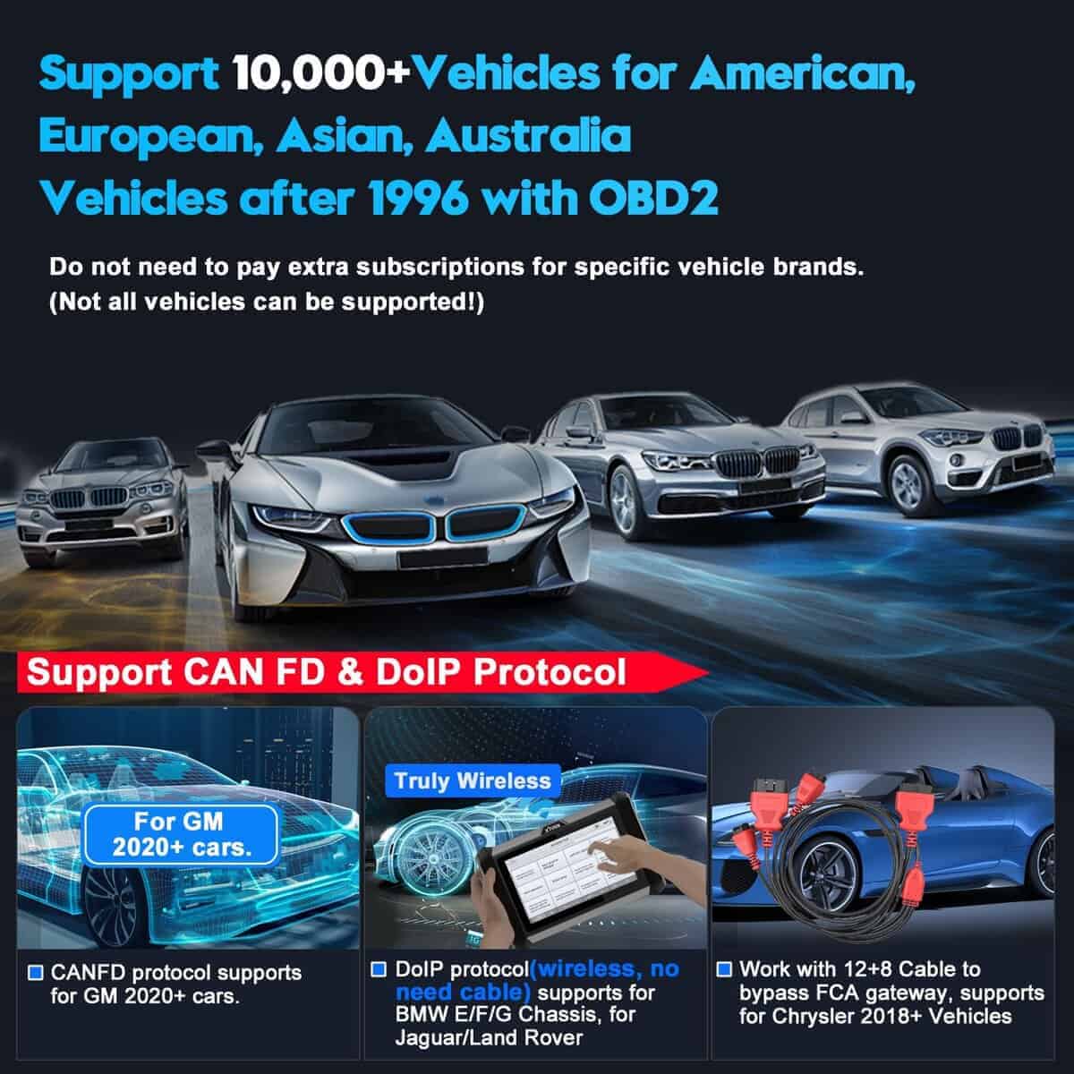 XTOOL D7W es una Herramienta de Escaneo Automotriz de Diagnóstico. XTOOL D7W es un escáner automotriz de alta calidad pero económico. Como la versión actualizada de XTOOL D7/D7 BT, versión inalámbrica de D7S, la herramienta de diagnóstico automotriz XTOOL D7W viene con una Conexión Inalámbrica Súper Más Rápida recién agregada, Protocolo DoIP Incorporado, Hardware Actualizado, y también está repleta de Codificación de ECU, 36+ Servicios de Mantenimiento, Control Bidireccional, Diagnóstico Completo de Sistemas OEM, Cobertura de 10,000 Vehículos, Sistema Operativo Android 10.0, Gráficos de 8 en 1, Actualización de 3 años. Estas características disponibles la convierten en una opción ideal para aficionados al bricolaje o técnicos profesionales. ¡Una actualización revolucionaria – Comunicación W!F! Versión actualizada del Escáner XTOOL D7BT, la herramienta de diagnóstico inalámbrica XTOOL D7W introduce una Conexión Inalámbrica de Alta Velocidad, con una velocidad de transmisión de 64 Mbps (Máx) , 20 veces más rápida que BT, dejando atrás a los escáneres BT tradicionales a este precio. Puede extender el rango de distancia de diagnóstico hasta 33-67 pies manteniendo una conexión estable, y hasta 100 pies en un entorno abierto sin ninguna interferencia de Wi-Fi. Escáneres de automóviles similares conectados por W!F! en el mercado suelen costar más de 1000 dólares, mientras que el D7W ofrece un rendimiento superior por solo $500. Codificación avanzada de ECU, ahorre dinero La herramienta de diagnóstico automotriz XTOOL D7W sobresale en la codificación de ECU para automóviles específicos VW, AUDI, SKODA, BENZ y Mitsubishi (no universales). Admite codificación sin conexión, emparejamiento de componentes, reinicio de datos adaptativos, para ayudar a mejorar el rendimiento del vehículo y personalizar la configuración del automóvil, ofrece la solución después del reemplazo del módulo o componente. Nota: No todos los vehículos mencionados anteriormente, o todos los módulos de los vehículos mencionados anteriormente pueden ser compatibles, revise la compatibilidad para módulo específico de automóvil específico antes de la compra a través de QA o xtooldirect @ outlook. com! Diagnóstico Completo de Nivel OEM y Bidireccional Completo Herramienta de escaneo bidireccional XTOOL D7W con diagnósticos de sistemas inteligentes, ayuda a acceder a todos los sistemas disponibles con diagnósticos a nivel de concesionario que brindan resultados precisos y detallados al leer/borrar códigos, ver datos en tiempo real/imagen congelada/información de ECU. Puede realizar pruebas activas para verificar el estado de funcionamiento de los componentes del automóvil, como Prueba de Compresión/Prueba de Ventilador de Enfriamiento/Ciclado de la Bomba ABS/Ventanas&Escobillas&Techo Solar&Puertas encendidas y apagadas, etc. Nota: El menú de Pruebas Activas varía entre vehículos. 36+ Reinicios y Funciones Especiales Avanzadas La herramienta de diagnóstico de vehículos XTOOL D7W le brinda una solución ideal para reparaciones diarias y ahorro de dinero en talleres de reparaciones al proporcionarle reinicios más útiles como Reinicio de Aceite/EPB/TPMS/BMS/SAS/SRS/Acelerador, Teclas IMMO, Sangrado de ABS, Codificación de Inyectores y funciones avanzadas bajo diagnóstico como Aprendizaje de Ralentí, Escritura de VIN, Aprendizaje de Sensor de Cigüeñal, Reinicio de Ajuste de Combustible, Inicialización de ABS, etc. como. Nota: Los Servicios Especiales NO funcionan en todos los automóviles. ¡Consulte la compatibilidad con VIN y funciones a través de xtooldirect @ outlook. com! Gráficos de Datos en Vivo de 8 en 1 y Análisis Automático y Funciones Extendidas Escáner de diagnóstico automático XTOOL D7W con características inteligentes como combina 8 gráficos de datos en vivo en uno, evita las situaciones problemáticas cuando 4 gráficos juntos no son suficientes para el análisis; como exploración automática, evita los problemas al ingresar manualmente el VIN; como trabajar con Cable 12+8 para eludir el sistema de gateway de Chrysler; como trabajar con Cámara de Inspección para una vista clara. Nota: ¡El VIN automático no es universal! Amplia Cobertura de Vehículos y 14+ Idiomas y CANFD & DoIP El escáner XTOOL D7W para automóviles funciona en 85+ Marcas, 140+ Modelos, 10000+ Automóviles, incluidos automóviles sedanes de 12V de EE. UU., Europeos, Asiáticos, Australianos, camionetas de carga liviana, SUVs, minivans después de 1996 con OBD2. La función multilingüe le permite trabajar para propietarios de automóviles a nivel mundial sin barreras de idioma. El protocolo CANFD también le permite diagnosticar automóviles GM 2020+ y el protocolo DoIP es compatible con los chasis BMW E/F/G, para Jaguar/Land Rover. Nota: No funciona en camiones o motocicletas de 24V! Servicio al Cliente Útil y Responsivo de XTOOL ¡XTOOL siempre prioriza las necesidades de los clientes y continuamente ofrece servicios técnicos receptivos y actualizaciones de software! Respaldado por el equipo técnico oficial de XTOOL, la herramienta de escaneo de diagnóstico XTOOL D7W viene con una garantía estadounidense de 2 años, nunca lo deja solo. ¡Las 3 años de actualizaciones de software gratuitas le brindan optimización de funciones, mayor cobertura de vehículos y operaciones más fáciles! ¡Proporcione S/N y Problemas para obtener ayuda a través de xtooldirect @ outlook. com!