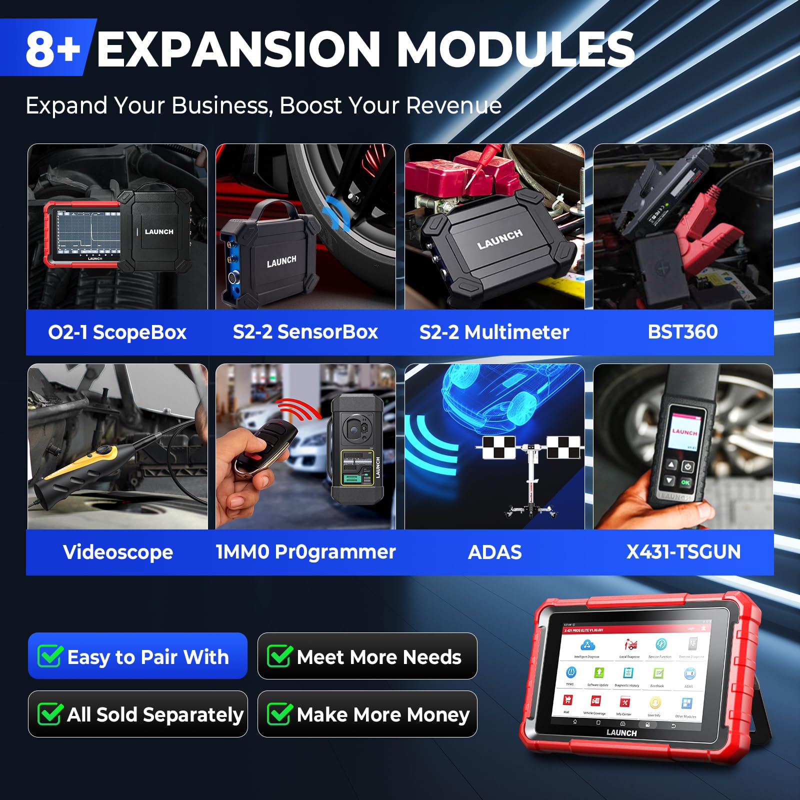 Esta herramienta de escaneo LAUNCH X431 tiene diagnósticos de todos los sistemas para Leer/Borrar códigos, Mostrar Datos Gráficos en Vivo y ha sido actualizada con 3000+ pruebas activas para identificar problemas automovilísticos como un profesional. Puedes inspeccionar casi todo en tu auto: ventana, espejo, cámara, acelerador, embrague, ventilador, luz, bocina, bomba, puerta, inyector, ciclar a/c, válvula, etc. Superior a la competencia, cubre más autos y hace diagnósticos precisos, facilitando y haciendo más inteligentes las reparaciones, satisfaciendo el 99% de las necesidades. Las ventajas de nuestra Codificación de ECU: 1) Operación Online/Offline a tu elección; 2) Base de datos extensa para más de 200 marcas. 3) Respaldo/restauración de datos de codificación de ECU; 4) Guía detallada de codificación. Disponible para BMW, Citroën, Renault, Audi, VW, Benz, etc. Con la Codificación de ECU de PROS Elite, puedes reemplazar/recodificar nuevos módulos, abrir ajustes para mejorar el modelo de auto (por ejemplo, apagar la advertencia del cinturón de seguridad, hacer que los faros parpadeen alarma, cambiar el brillo del tablero, autochequeo del puntero en movimiento) y solucionar problemas automovilísticos complejos. 38+ Servicios, Aún en Expansión ¿No tienes suficientes servicios de mantenimiento o cobertura completa de vehículos? Este escáner X431 te ofrece 38+ servicios populares para 200+ marcas de autos que cubren todas las necesidades de reparación en todos los módulos: Reinicio de Aceite, Acelerador, SAS, E-P-B, TPMS, ABS, BMS, Engranaje, Codificación de Inyectores, Regeneración de DPF y más; siempre actualizándose para mantener tus servicios de taller al día. NOTA: no todos los servicios funcionan con todos los autos. Para verificar compatibilidad. Especificaciones Superiores, 8+ Módulos de Expansión Esta herramienta de escaneo X431 tiene especificaciones de primera categoría: Android 10.0, 2.0Ghz 4-core, pantalla táctil de 8 pulgadas, 4/64GB de RAM/ROM, batería de 6000mAh. Debido a su operación más suave y prolongada, se convierte en la favorita entre los profesionales y talleres de reparación. Valor excepcional adicional: hereda las ventajas de X431 V+5.0; puede trabajar con 8+ módulos de expansión: ScopeBox O2-1, SensorBOX S2-2, Multímetro S2-2, BST360, VSP600, X-PROG3, TSGUN, ADAS ToolKit y más para ampliar enormemente tu negocio.