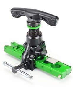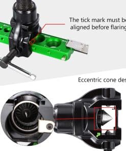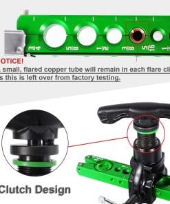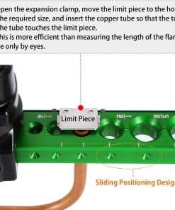 Tipo de cono excéntrico – El cono de expansión de acero endurecido montado excéntricamente produce una acción de laminado para un flujo de metal uniforme, dando paredes de expansión uniformes sin desgaste. Diámetro exterior del tubo aplicable: 1/4 «, 5/16», 3/8 «, 1/2», 5/8 «, 3/4». (NOTA: ¡Solo realizará una expansión simple, no doble!) Pieza de límite y embrague – (1) Después de insertar el tubo de cobre, la longitud del tubo expandido puede ser limitada precisamente por la pieza de límite, lo cual es más eficiente y conveniente que medir solo con los ojos. (2) Hay un embrague en la manija giratoria, que se desconectará automáticamente cuando se complete la operación de expansión. Ultraligero – La herramienta de expansión de tuberías está hecha de aleación de aluminio y es muy ligera. Pesa menos de 1 kg, por lo que puedes sostenerla y trabajar durante mucho tiempo sin cansarte. Amplia aplicación – La herramienta de expansión de tubos es aplicable a tubos de metal blandos como tubos de cobre / aluminio. Ampliamente utilizada en productos eléctricos, como HVAC, aires acondicionados, calentadores de aire, refrigeradores, etc. Lista de empaque – Esta herramienta de expansión incluye el puente 1, abrazadera de expansión tipo pulgada 1 (sin estuche).