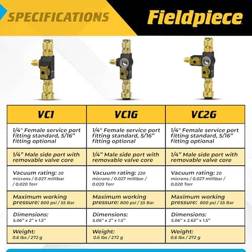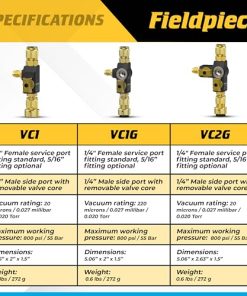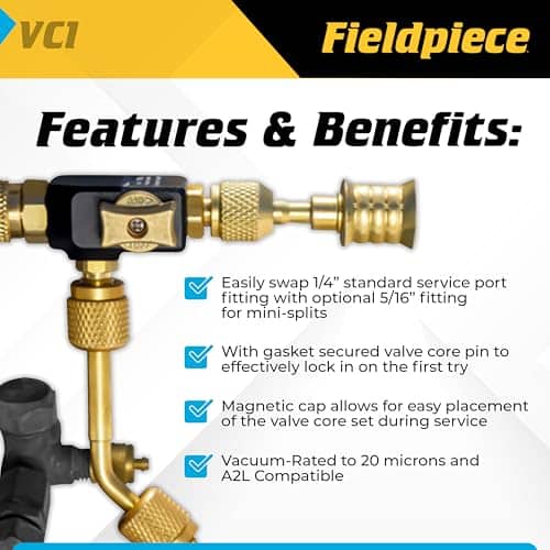 La herramienta de extracción de núcleo de válvula Fieldpiece VC1 1/4″ es una herramienta esencial para los técnicos de HVAC que necesitan realizar trabajos de mantenimiento en sistemas de aire acondicionado. Con la capacidad de cambiar fácilmente el ajuste estándar de puerto de servicio de 1/4 con el ajuste opcional de 5/16 para mini-splits, esta herramienta ofrece versatilidad en el campo. El pasador de válvula asegurado con junta tórica permite bloquear eficazmente en el primer intento, lo que garantiza un sellado seguro. Además, la tapa magnética facilita la colocación del juego de núcleos de válvula durante el servicio. Con una capacidad de vacío de 20 micrones y compatible con A2L, la herramienta Fieldpiece VC1 es una excelente opción para los profesionales de HVAC y HVACR. Esta herramienta viene con una garantía de 1 año a partir de la fecha de compra, lo que brinda tranquilidad a los usuarios.