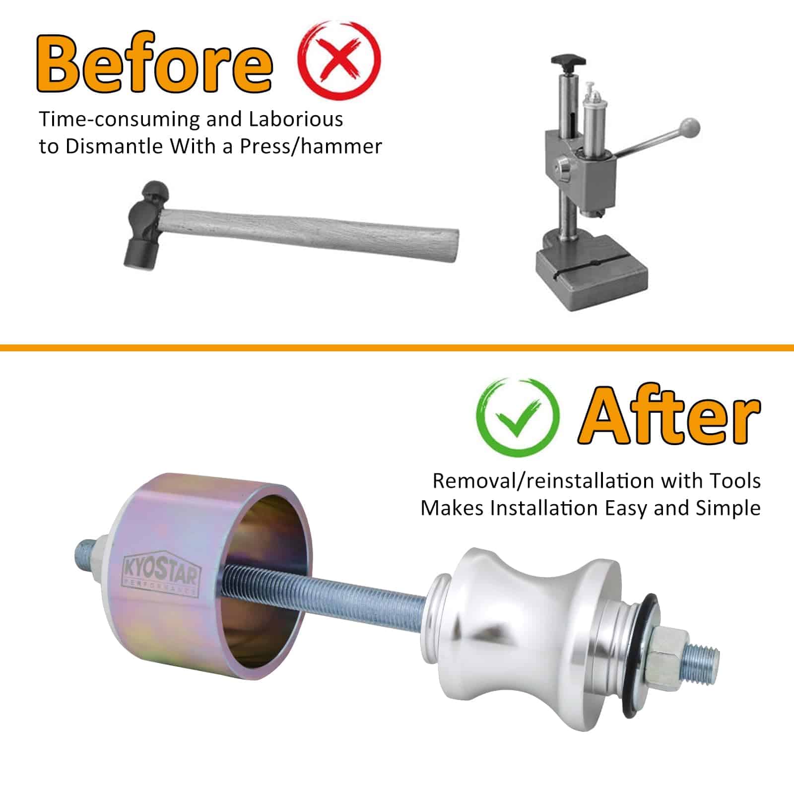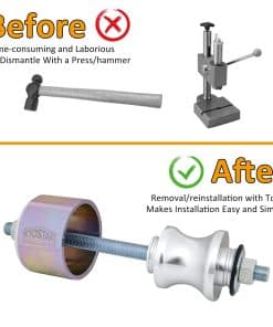 5. Ahorro de Espacio – La herramienta es súper fácil de usar y llevar, puedes tirarla en tu caja de herramientas para estar listo para cambiar rodamientos en cualquier lugar donde conduzcas.