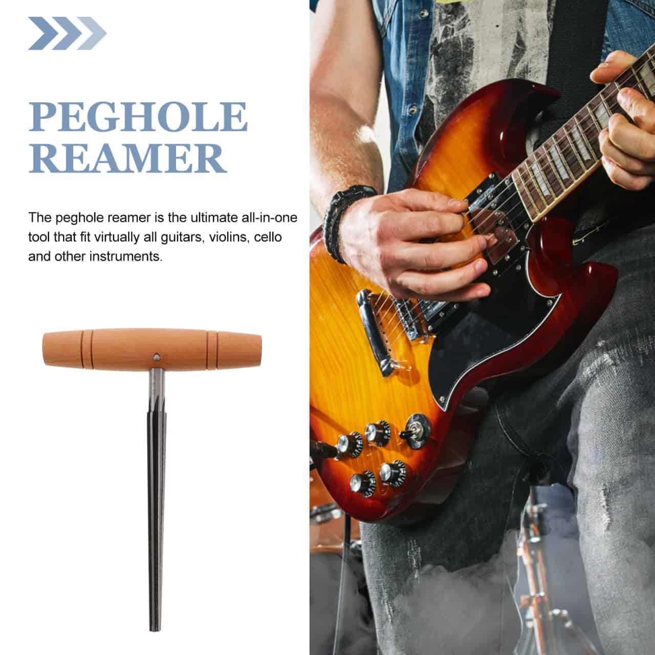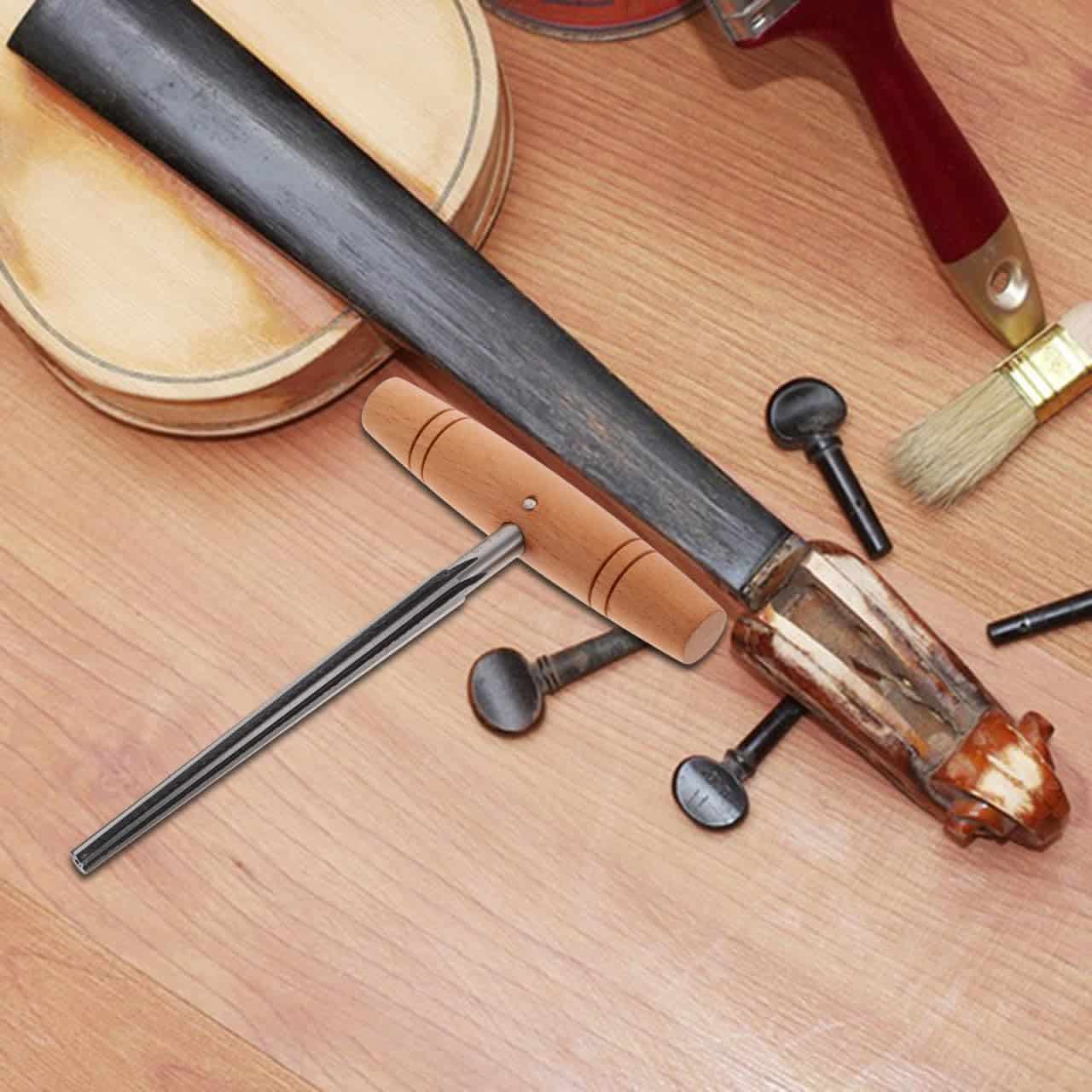 Esta herramienta está hecha de premium acero inoxidable con mango de madera para un uso duradero y de larga duración. Es un reamer de clavija de alta calidad, que está diseñado de manera práctica para un uso eficiente y cómodo. El reamer de orificio de clavija es la herramienta todo en uno que se ajusta a prácticamente todas las guitarras, violines, cellos y otros instrumentos.