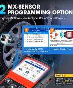 3. Programe los MX-Sensors de Autel. La herramienta de relearn TS508WF hace posible programar el sensor fácilmente en lugar de acudir al distribuidor. La herramienta de programación de TPMS TS508WF proporciona todas las formas posibles para programar Autel MX-Sensors (433MHz y 315MHz): Copiar por OBD (TS408/TS401 NO PUEDEN) Auto Crear de 1 a 16 sensores simultáneamente (El tiempo promedio es de 6 a 8 segundos por pieza, mayor eficiencia de programación). Todo esto es fácil de hacer y ahorra tiempo. Nota: TS508WF solo puede programar Autel MX-Sensors.