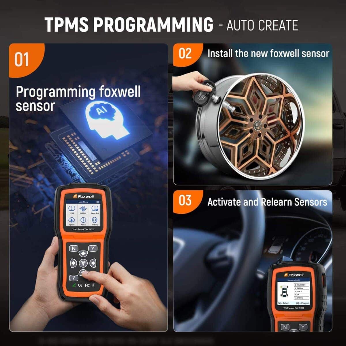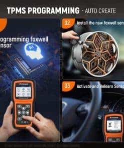 1. Herramienta TPMS 2023 más nueva + Asequible y fácil de usar FOXWELL T1000 es la herramienta TPMS de la nueva generación 2023 para activar sensores TPMS OEM/Universal, recuperar datos del sensor TPMS (ID del sensor, presión de los neumáticos, temperatura, estado de la batería y número de pieza OEM), programar el sensor FOXWELL T10 para reemplazar sensores defectuosos, proporcionar procedimiento de aprendizaje de relearn en la herramienta para autos y probar RF Remote Keyless Entry Key Fob. Ahorrará tiempo y dinero al evitar un viaje costoso al concesionario.