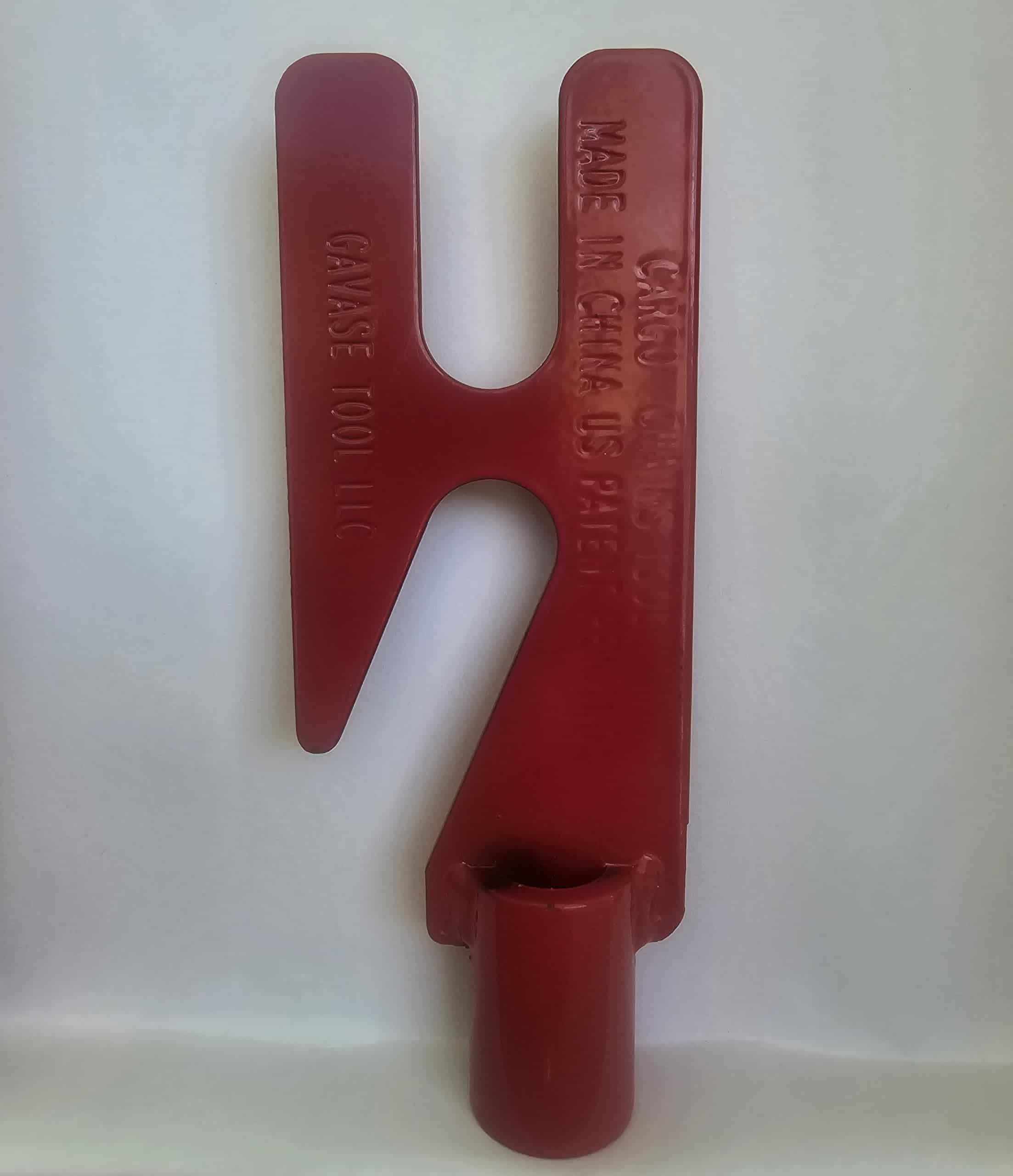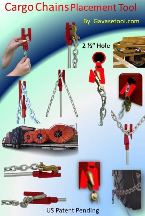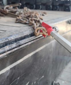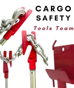Herramienta de acero sólido para la seguridad en la sujeción de carga en plataforma plana. Se utiliza para colocar cadenas de amarre en lugares de difícil acceso desde el nivel del suelo. Es una herramienta de prevención de accidentes y caídas. Mejora la velocidad y la seguridad laboral. Sin necesidad de escalar o usar escaleras.