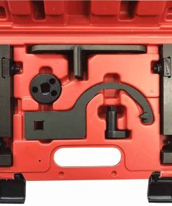 Herramienta de sincronización del árbol de levas del motor de gasolina de Jaguar Land Rover. Utilizado para bloquear el árbol de levas y el cigüeñal en su posición cronometrada en los motores de gasolina V8 de 5.0 posteriores a 2010 en Jaguar y Land Rover. Herramienta de sincronización del árbol de levas, para bloquear la corona de engranajes. Para tensar el VVT durante el procedimiento de sincronización. Maletín de moldeado por soplado para almacenamiento.