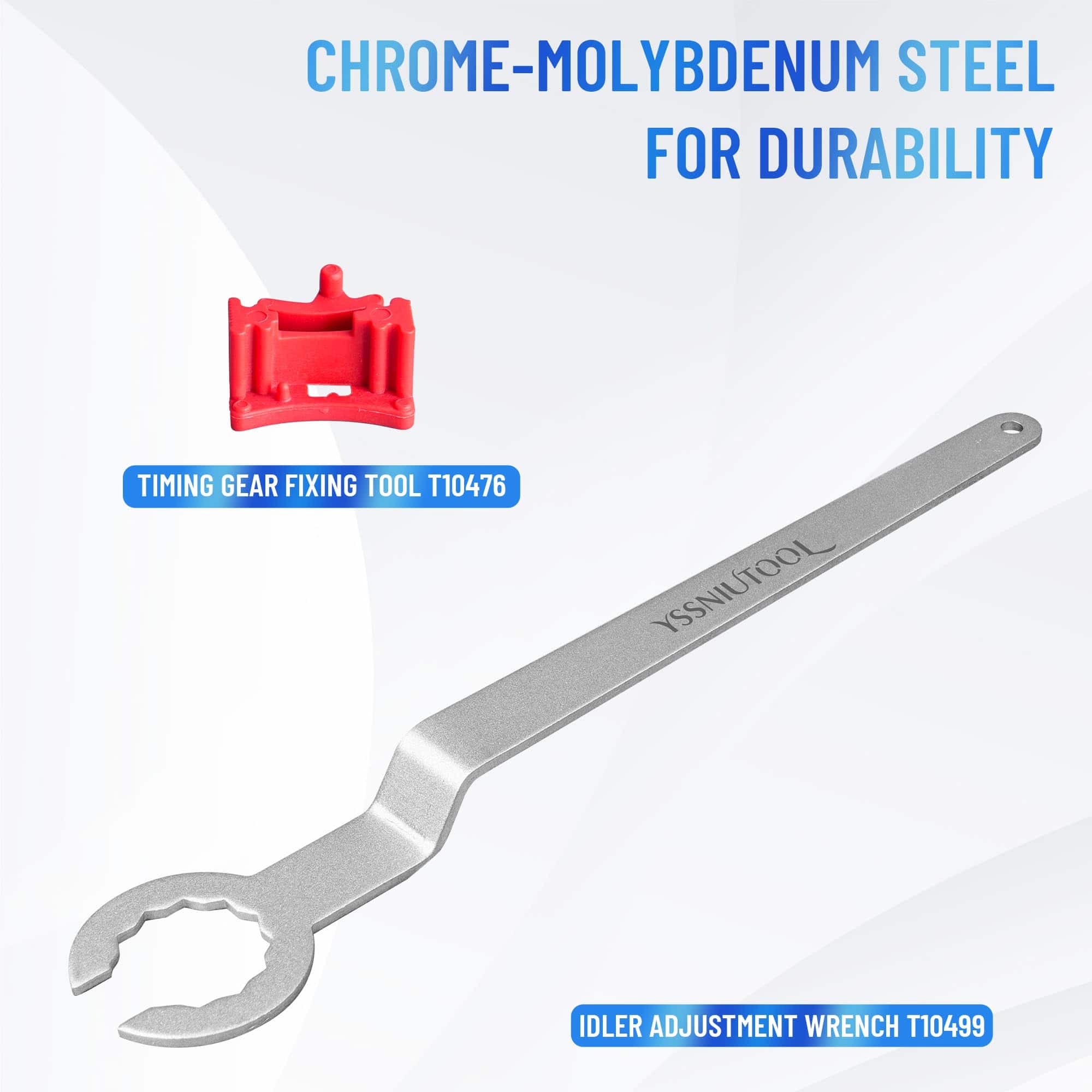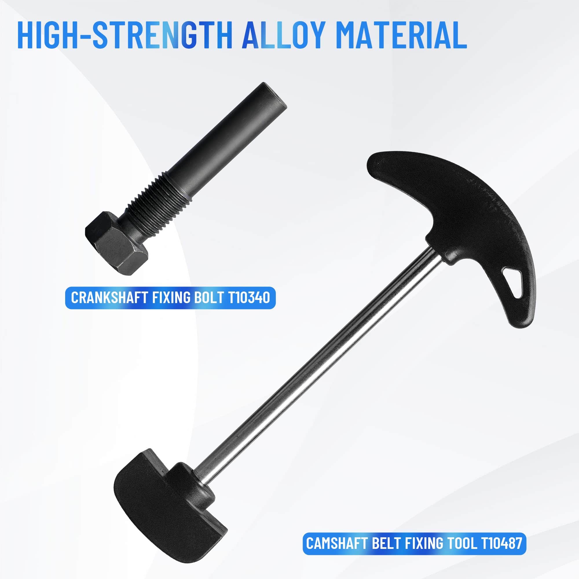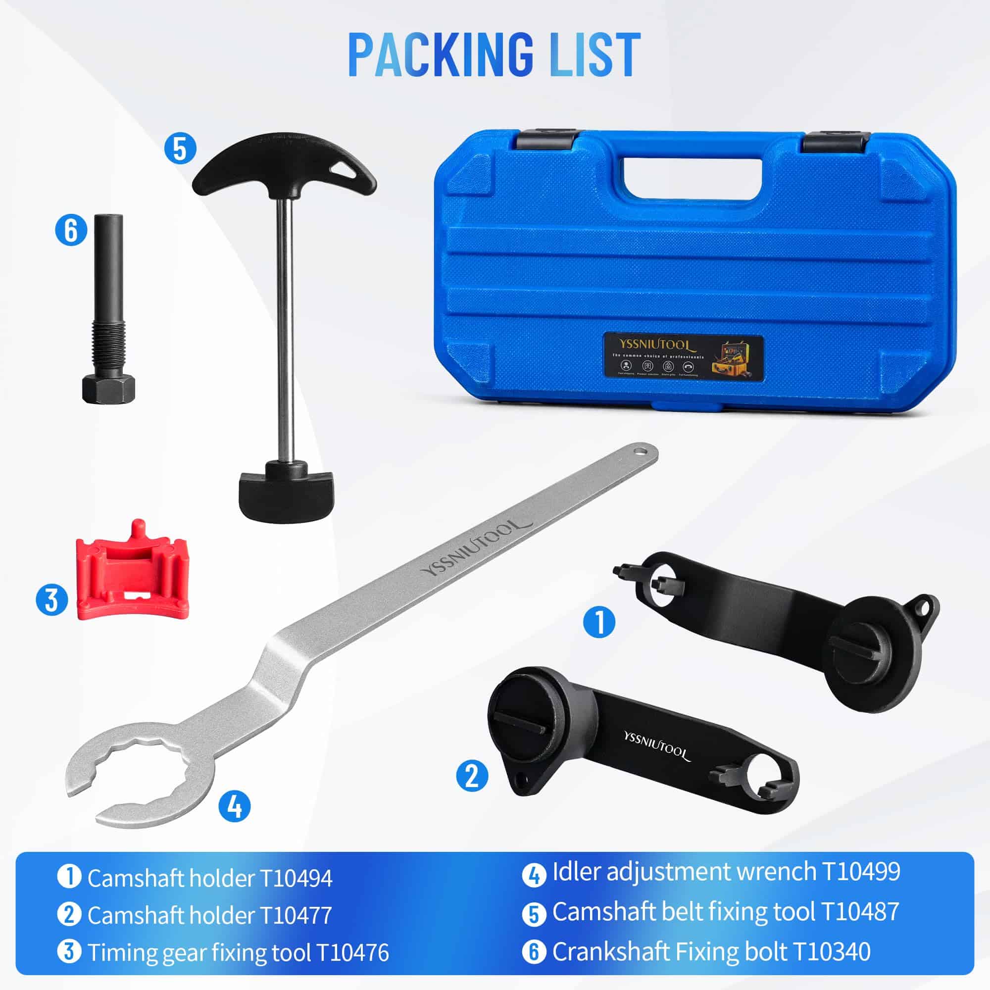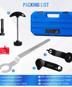 2. La herramienta de alineación del árbol de levas de sincronización del motor es compatible con los números de modelo T10340, T10494, T10499, T10487, T10476, T10477. Todos se pueden almacenar en la maleta.