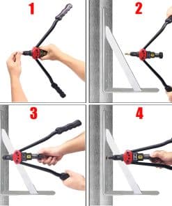 Herramienta de Tuerca de Remache ZIOJOVK de 16 Pulgadas es un kit completo para la instalación de tuercas de remache en una variedad de aplicaciones. Con un diseño de cabeza de cambio rápido sin herramientas, puedes cambiar los mandriles y las puntas rápidamente sin necesidad de herramientas adicionales, lo que facilita y acelera tu proyecto. El brazo de acero al carbono de 16 pulgadas tiene asas ergonómicas con bisagras de doble compuesto que maximizan la palanca para proporcionar una fijación personalizada en una amplia gama de aplicaciones de remachado.