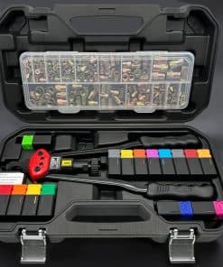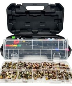 Las asas de acero al carbono de alta resistencia hacen que esta pistola de tuerca de remache sea robusta y duradera, y con 15 especificaciones de mandriles intercambiables, puedes estar seguro de que tendrás la herramienta adecuada para el trabajo en todo momento. El kit incluye 15 juegos de mandriles/puntas intercambiables en tamaños Métricos y SAE, junto con 236 tuercas de remache, lo que te proporciona una amplia selección para diferentes aplicaciones.