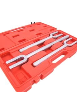 Este juego de separador de juntas de rótula está diseñado para aplicaciones automotrices versátiles, incluyendo la remoción de enlaces de amortiguadores, barras de acoplamiento y juntas de rótula, haciéndolo ideal para servicio general en coches y camionetas ligeras. Cuenta con tres tipos de tenedores pickle con diferentes tamaños: una abertura de 22mm y longitud de 300mm, una abertura de 27mm y longitud de 300mm, y una abertura de 18mm y longitud de 400mm. Construido en acero 40CR duradero, este juego de herramientas asegura fuerza y longevidad. Los mangos extra largos proporcionan una mejor maniobrabilidad y pueden manejar efectivamente ángulos difíciles. Todos los tenedores pickle están roscados para ser intercambiables con ambos mangos. El set viene en un estuche de plástico moldeado por soplado resistente para portabilidad fácil y almacenamiento organizado.
