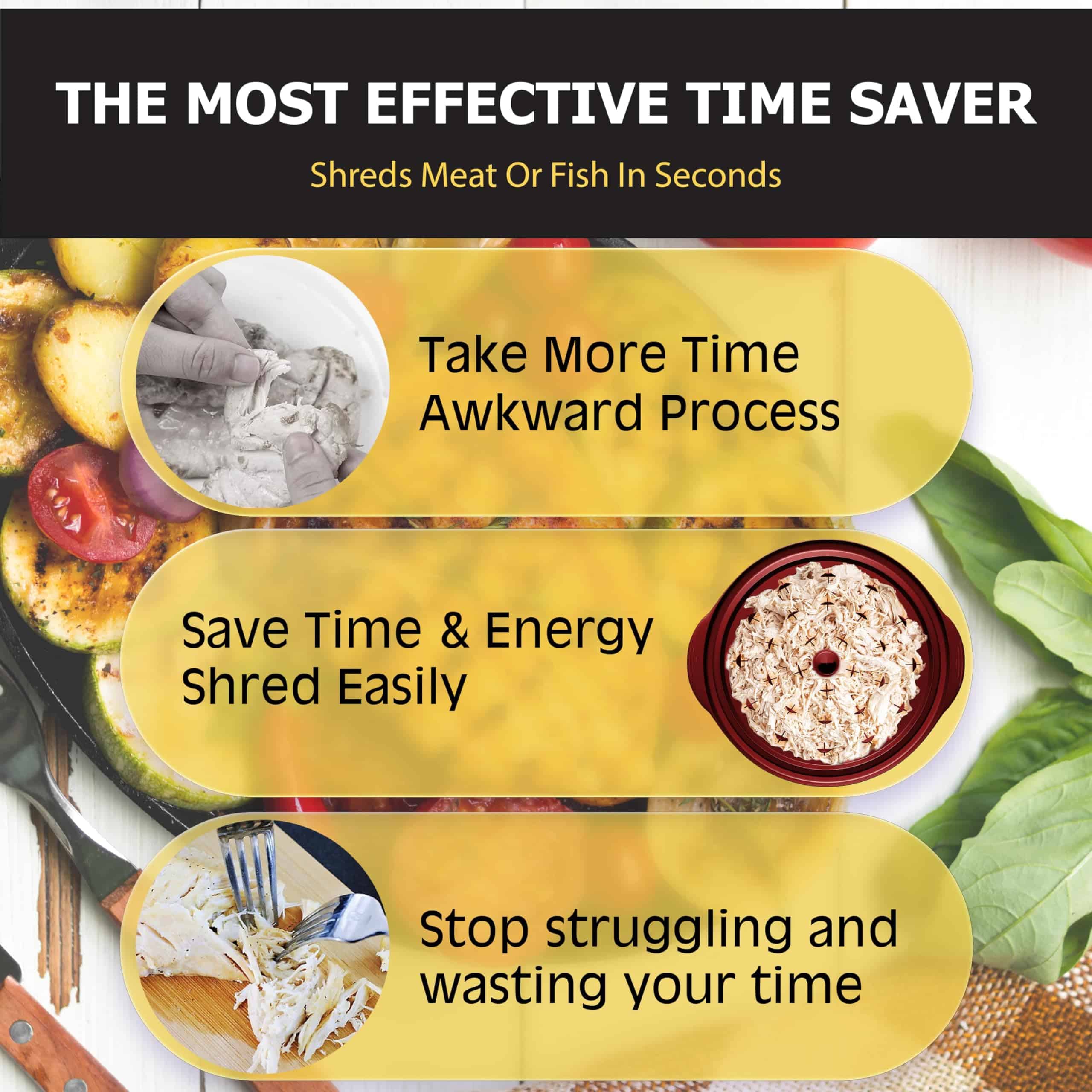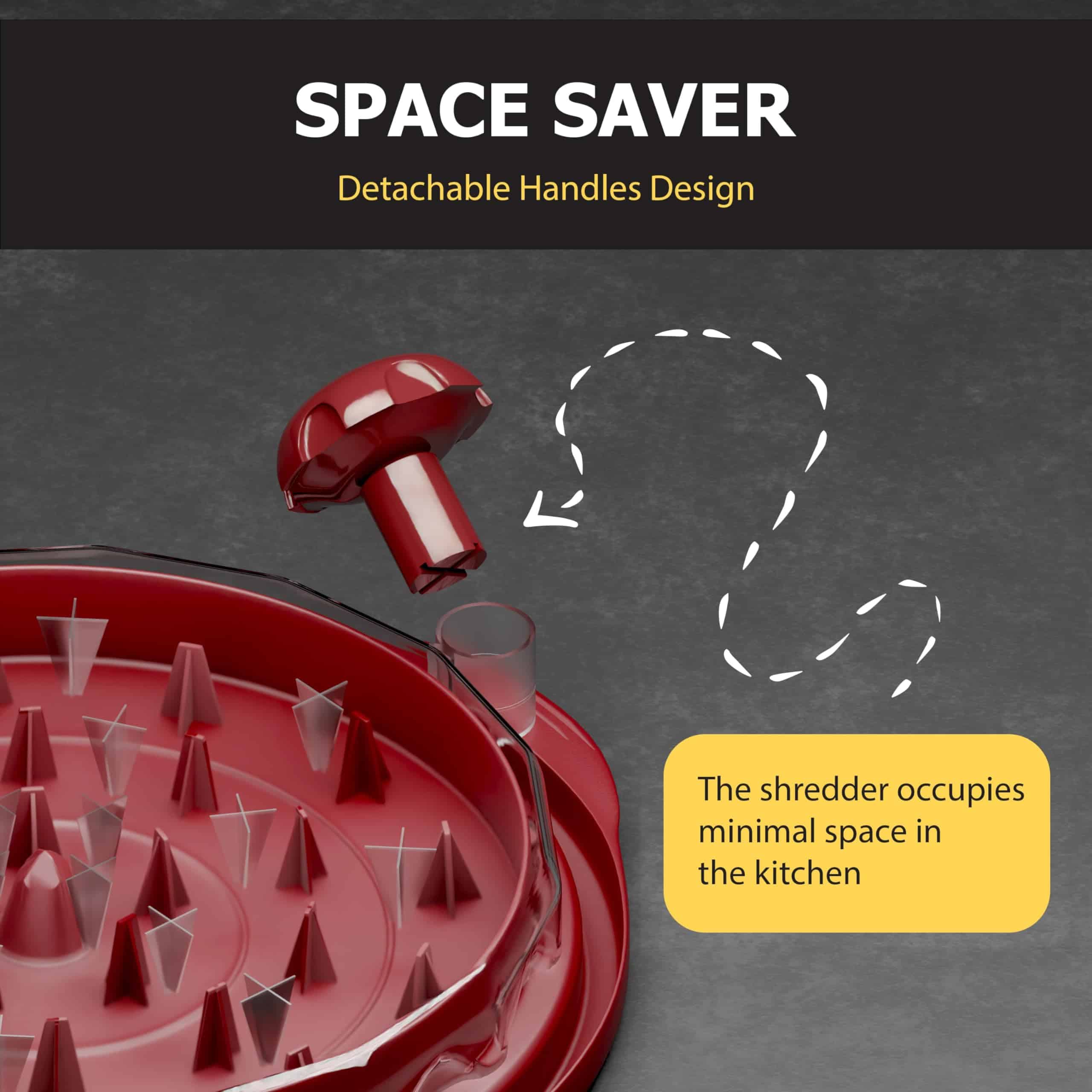 3. Fácil Mantenimiento – Hecho de plástico premium libre de BPA, este desmenuzador tiene una tapa transparente y es apto para lavavajillas para una limpieza rápida.
