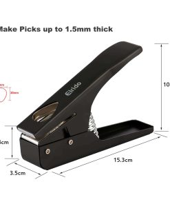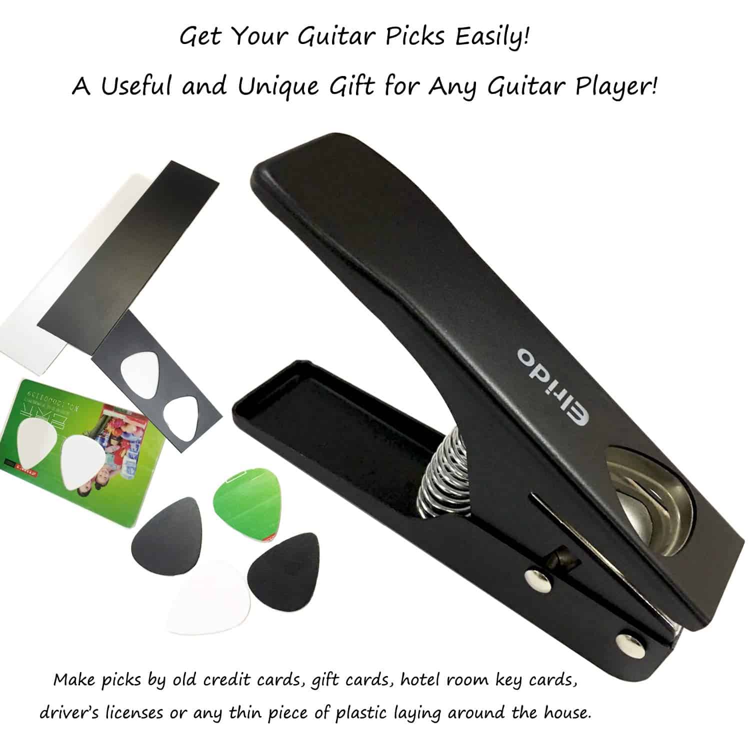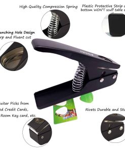 1. MEJOR REGALO para GUITARRISTAS: Un regalo útil y único para cualquier guitarrista. El diseño duradero y resistente y la cuchilla de acero inoxidable le permiten crear púas de guitarra uniformes y suaves cada vez. Paquete incluido: 1 x punzón para púas de guitarra, 2 x láminas de inicio de púa de guitarra (0.65-0.71 mm de grosor), 1 x Soporte para púas de guitarra de cuero. 2. FÁCIL DE USAR: Puede hacer fácilmente púas de guitarra personalizadas a partir de tarjetas de crédito antiguas, tarjetas regalo, tarjetas clave, tarjetas de identificación universitarias, tarjetas de identificación, licencias de conducir, puede cortar ABS, PVC, Celluloid y Derlin, etc. 3. PROVEEDOR INTERMINABLE DE PÚAS: La herramienta sólida para hacer púas es imprescindible para un músico. Relleno de calcetín, obsequio relleno de calcetín, ideal para reciclar, ¡gran regalo para los guitarristas! Con este cortador de púas de guitarra Elrido, corta plástico de menos de 1.5 mm de grosor, simplemente deslízalo en el cortador, dale un empujón, al instante surgirá una púa de guitarra en forma de corazón del punzón. 4. CONSTRUCCIÓN RESISTENTE CON GRAN MATERIAL – Acero inoxidable. La construcción resistente y la cuchilla de acero inoxidable permiten a los usuarios hacer púas de guitarra uniformes y suaves cada vez. 5. DIMENSIÓN – 6.1 x 3.94 x 1.41 pulgadas. Relleno de calcetín, regalo relleno de calcetín, ideal para reciclar, gran regalo para los guitarristas