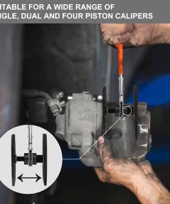 La herramienta para caliper de freno te ayuda a comprimir y alinear rápidamente el pistón en su lugar para hacer espacio para reemplazar las pastillas de freno gruesas. Nuestro prensa de caliper profesional se adapta a todos los trinquetes de prensa de caliper de disco, herramientas de freno y juegos de ajuste de cilindros de freno. La herramienta perfecta para la mayoría de los camiones grandes y vehículos comerciales. Disponible para calipers fijos de dos y cuatro pistones, así como calipers flotantes de uno y dos pistones.