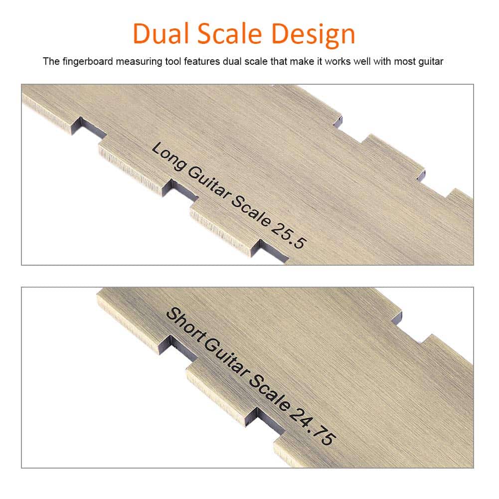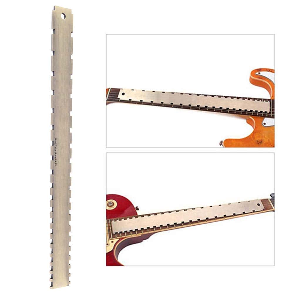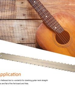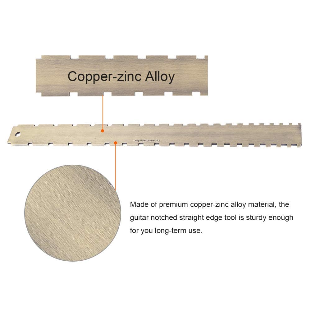 Herramienta Recta para Guitarra de Calidad Premium: Esta herramienta de medición de diapasón para guitarra está fabricada en material de aleación de cobre-zinc de primera calidad, lo que garantiza su resistencia y durabilidad a lo largo del tiempo. Su diseño de doble escala la hace compatible con la mayoría de las guitarras, permitiéndote verificar la rectitud del mástil y la planicie del diapasón y los trastes. Resulta ser un accesorio útil para los guitarristas, ayudándoles a lograr un mejor desempeño en su instrumento.
