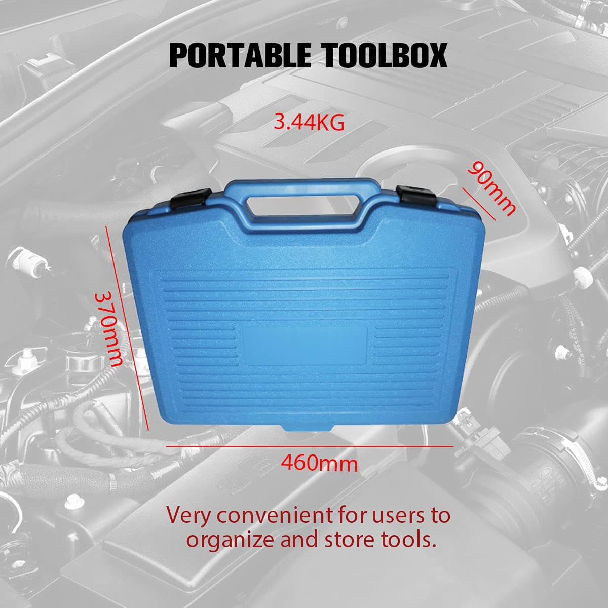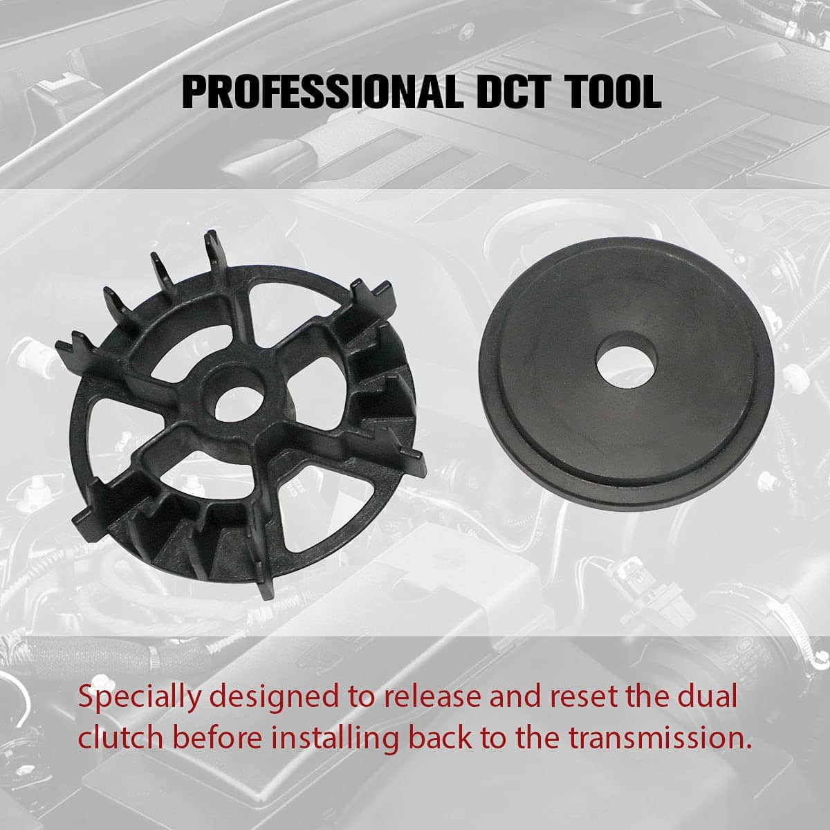 Herramienta removedora e instaladora de transmisión de embrague doble CMTOOL compatible con Ford Focus DCT. Esta herramienta es ideal para reutilizar el conjunto de embrague doble removido o previamente instalado en tu vehículo. Hecha de acero resistente y duradero, esta herramienta es perfectamente compatible con la transmisión de embrague doble DPS6 de Ford Focus. La superficie de la herramienta está fosfatada para prevenir el óxido y garantizar una vida útil prolongada. Su uso es sencillo, solo instala la herramienta especial y presiona el eje de entrada firmemente, luego gira la barra roscada 20 veces. El set de herramientas DCT viene con un estuche organizador para un almacenamiento conveniente. Además, ofrecemos una garantía de 12 meses para este kit, para que puedas comprar con confianza. Si tienes alguna pregunta, nuestro equipo técnico estará encantado de ayudarte en un plazo de 24 horas.
