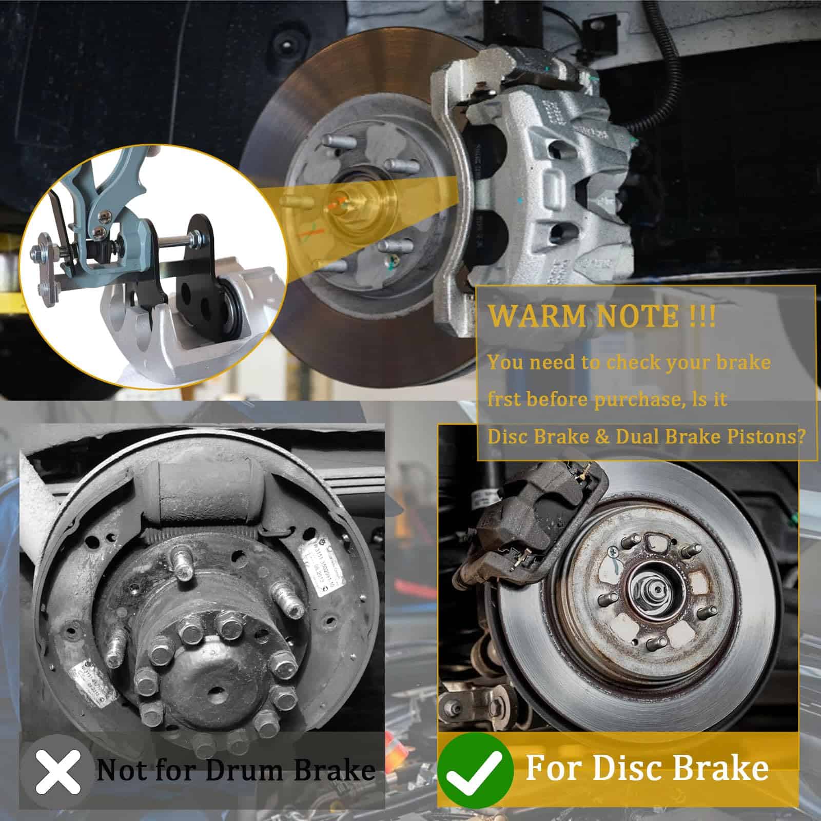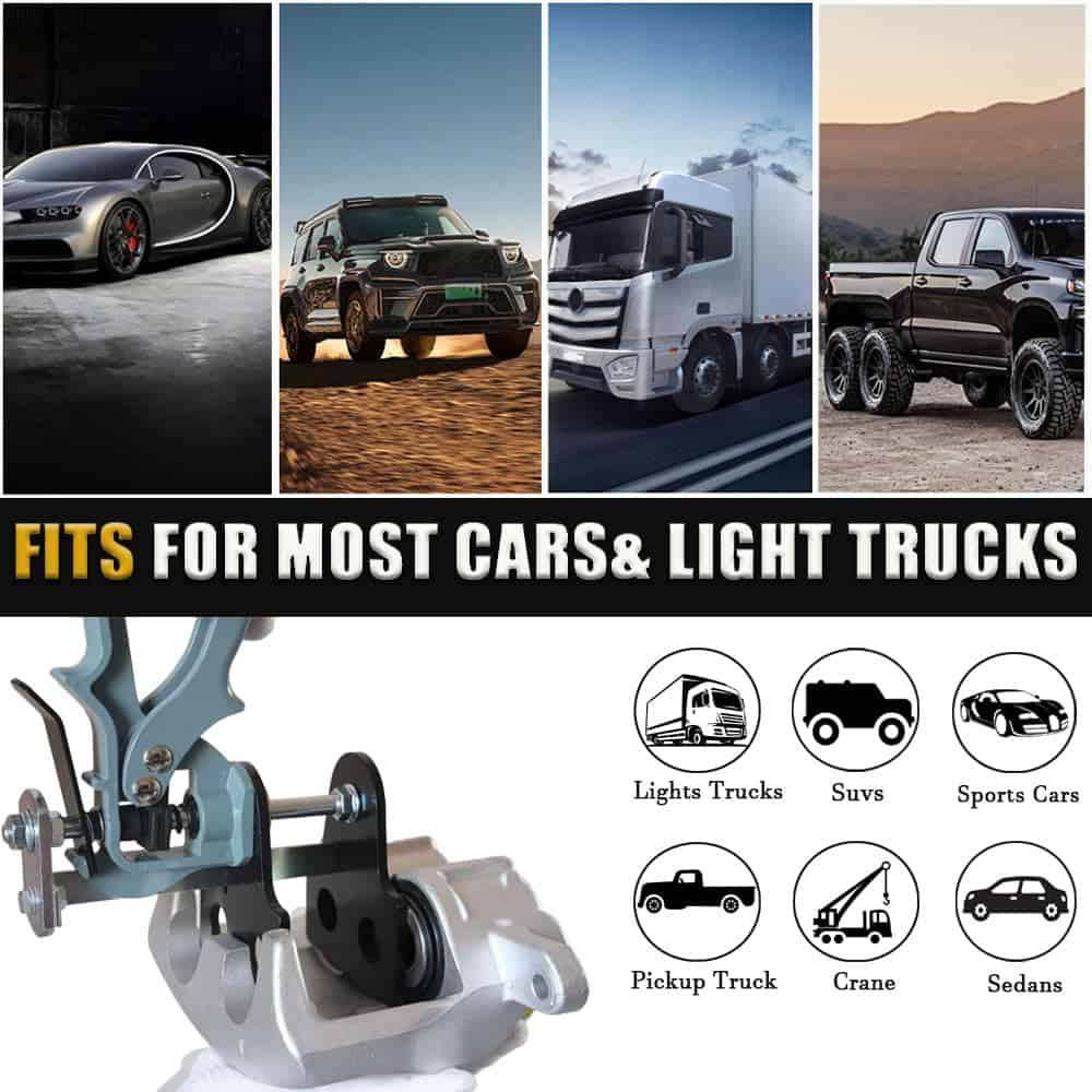 1. COMPATIBLE CON: La herramienta de compresión de la pinza de freno comprime simultáneamente pistones de freno individual/doble/cuádruple/sextuplet, funciona bien en la mayoría de las pinzas de freno de coches y camionetas ligeras. (NOTA): Todos incluimos frenos de disco, no tambores, así que asegúrese de verificar dos veces antes de presionar el botón de compra).
