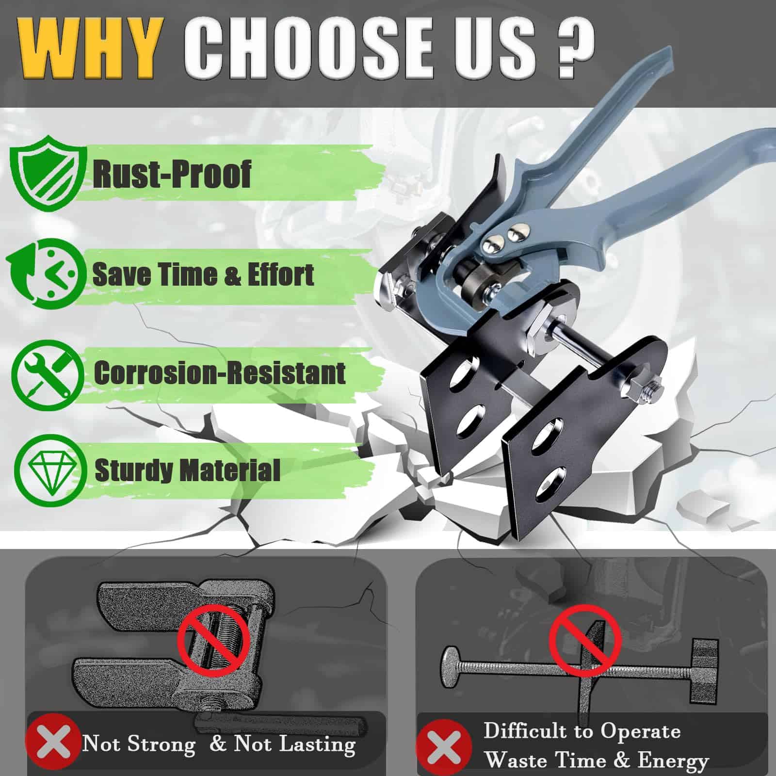 3. MATERIAL RESISTENTE Y CONFIABLE: El compresor de pinza está hecho de material de metal de alta calidad para resistencia, durabilidad y resistencia a la corrosión, garantizando un rendimiento para trabajos repetitivos a largo plazo. La pinza de freno está construida de aleación de alta dureza y los manerales están hechos de resistente aleación de aluminio. La superficie de granallado protectora garantiza una resistencia superior al desgaste y la corrosión, convirtiéndolo en una herramienta fiable para uso pesado.