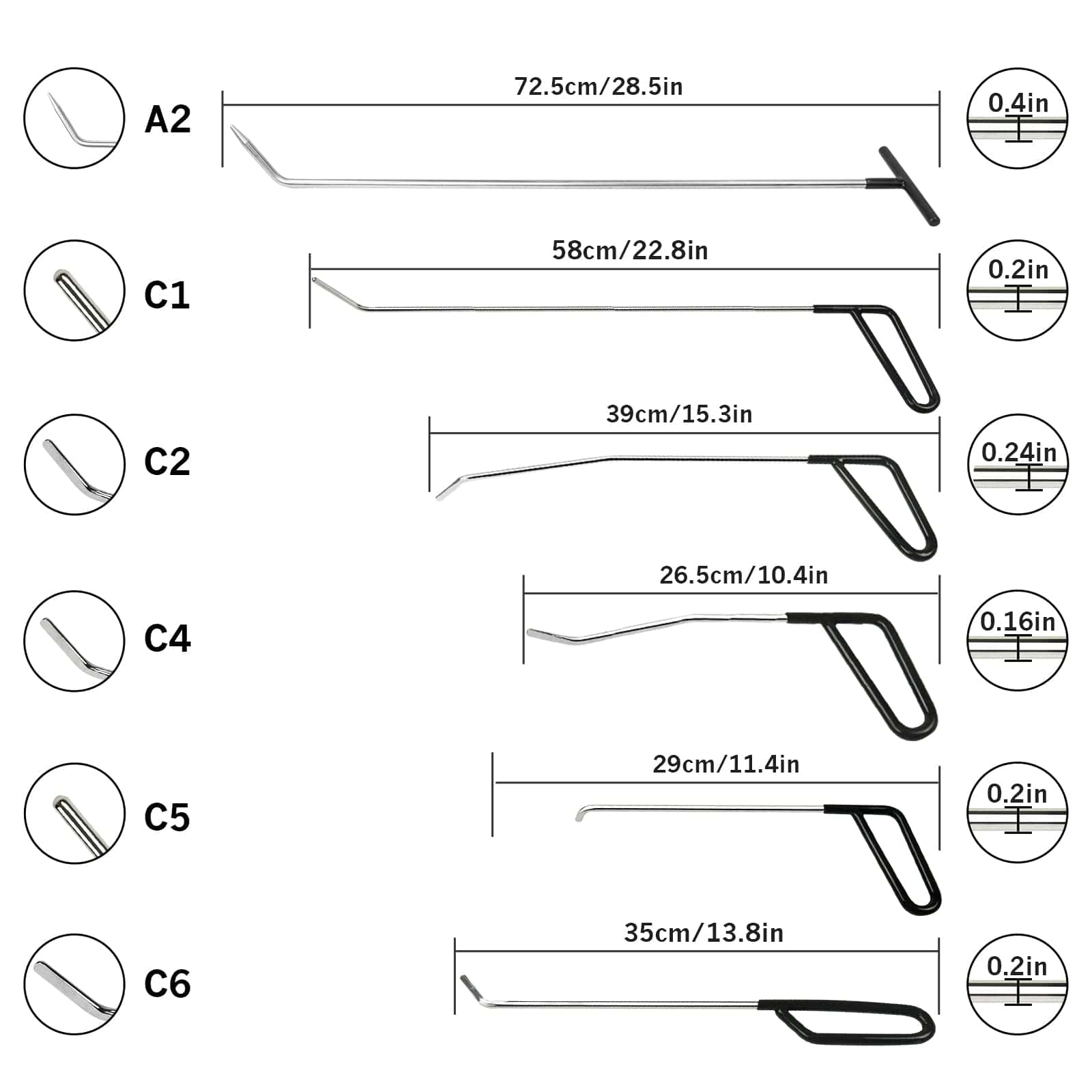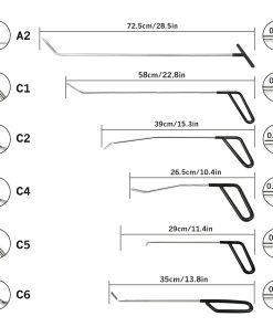 Las barras recién diseñadas están hechas de acero inoxidable. Son duraderas y resistentes a la corrosión, con garantía de alta calidad y fácil de almacenar. Cualquiera puede manejar la eliminación de las abolladuras, fácil de usar. Pueden ser ampliamente utilizadas. Por ejemplo, automóvil, motocicleta, refrigerador y lavadora. Además, protege la pintura original, elimina eficazmente las abolladuras rápidamente e incluye 6 barras de diferentes longitudes para todo tipo de reparaciones de abolladuras. Las barras de reparación son adecuadas para su uso por cualquier persona. Pueden ser utilizadas con accesorios, aprovechando el principio de palanca para resolver sin esfuerzo abolladuras o dobleces molestos. Concepto de Producto de Protección Ambiental, alta calidad, alto servicio, rápida y efectiva ayuda para eliminar las abolladuras, convirtiéndose en una gran herramienta y un buen asistente para reparar su automóvil.
