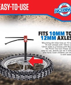 Baja No Pinch, Instalación de neumáticos sin frustraciones Acerca de Baja No Pinch – La Herramienta Baja No Pinch se dedica a ofrecerte las herramientas y accesorios para tu estilo de vida off-road en motocross y motocicletas de tierra Baja. Diseñamos, creamos, fabricamos y source quality products con el objetivo de mejorar tu experiencia off-road. El camino del Motocross Baja. Protege los tubos de los neumáticos Nuestro sistema de cremallera y piñón empuja el talón del neumático sobre la llanta, eliminando los tubos de neumáticos pellizcados. Premiado – Nos sentimos honrados de ser seleccionados como la Herramienta del Año de la Revista Dirt Rider en 2014. Seguimos ganando los corazones de nuestros clientes en nuestra tienda y redes sociales. Probado y perfeccionado – Desde 2014 hemos estado colaborando con pilotos para probar, perfeccionar y redefinir nuestras herramientas. Las partes mecanizadas por CNC en la herramienta están todas fabricadas en los EE. UU. Todas las partes están anodizadas o tratadas con óxido negro para una mayor durabilidad y una apariencia mejorada. Construido para durar – Sabemos que estas herramientas se van contigo off-road en terrenos difíciles, las construimos resistentes para que coincidan. Fabricamos nuestras herramientas con materiales y máquinas de calidad aeronáutica para garantizar que nuestras herramientas sean una inversión para toda una vida cuando se utilizan adecuadamente. ¡Llamando a Todos los Pilotos Hágalo Usted Mismo! Todas las Marcas, Todos los Modelos, Todos los Neumáticos – ¡Todo lo que necesitas hacer es medir tus ejes! No importa si prefieres Motos de Trail, Motos de Motocross, Motos de Enduro, Motos de Dual Sport, Motos de Supermoto, Hillclimbers o Flat Tracks, si eres un entusiasta del motocross que quiere o necesita cambiar tus neumáticos rápidamente, fácilmente y sin pellizcar tus tubos, entonces no busques más. Mangas, Tubeless, Mousse – ¡Sí, Sí, Sí! ¡PASA TIEMPO EN LA PISTA, NO CAMBIANDO TUS NEUMÁTICOS!