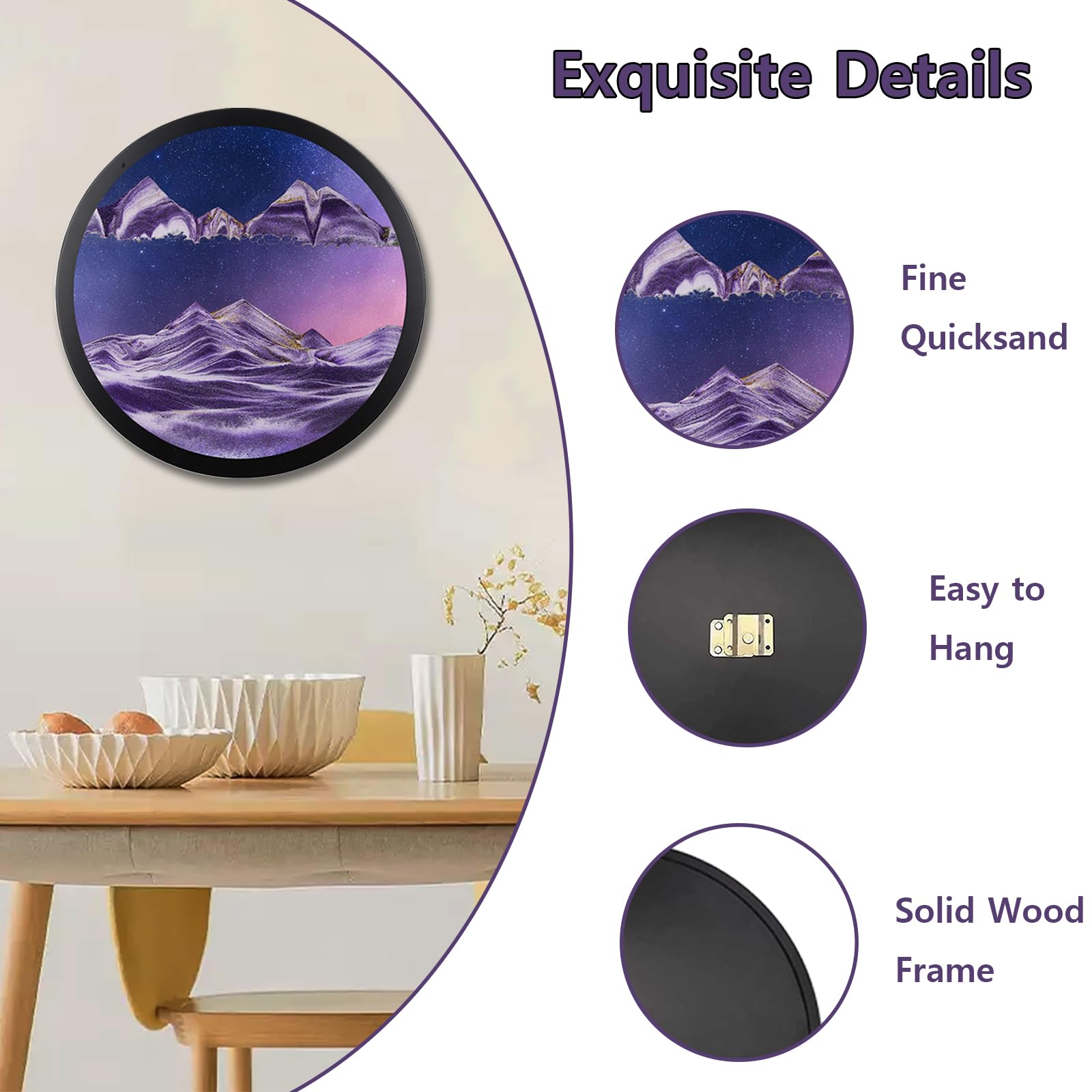 Nuestro arte de arena en movimiento está hecho de fina arena rápida y marco de madera negro de alta calidad, que puede rotar 360� y permitirte disfrutar de la belleza de la arena. Al mismo tiempo, la hermosa decoración de arte de arena en movimiento se usa ampliamente, no solo puede decorar tu hogar para ayudarte a calmar tu estado de ánimo, aliviar el estrés, sino también como regalo de cumpleaños o festivo para la familia, amigos, parientes e hijos y brindarles felicidad.