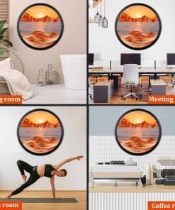 5. Regalo perfecto La divertida imagen de arte de arena en movimiento también es un buen regalo para padres, amigos, niños y familiares. El arte de arena de pared de 24″ es colorido y siempre cambiante, lo que les brindará el disfrute de la belleza.