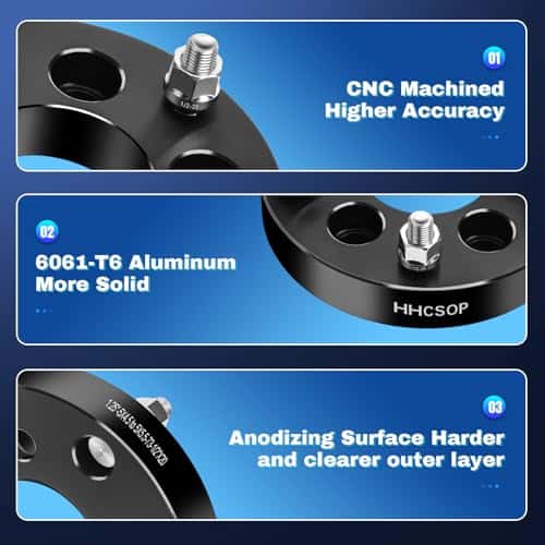 Adaptador de rueda HHCSOP de alta calidad para mejorar el rendimiento de su vehículo. Compatible con una amplia gama de vehículos Ford, Jeep, Mazda, Lincoln y Mercury. Forjado en aleación de aluminio 6061-T6, mecanizado automáticamente por CNC para garantizar alta precisión y estabilidad, superficies anodizadas y tratadas térmicamente para mejorar la resistencia a la corrosión. Incluye pernos de primera calidad de grado 10.9. Proporciona espacio adicional entre la rueda y el conjunto del buje, mejorando el rendimiento del vehículo en términos de manejo y tracción. Hace que su vehículo sea más estable y permite la instalación de kits de elevación/reducción y neumáticos de tracción más grandes. Antes de comprar estos separadores de rueda, verifique la compatibilidad de su vehículo (año/marca/modelo) en la descripción del producto. Si tiene alguna pregunta, por favor contacte al equipo de atención al cliente para obtener más ayuda.