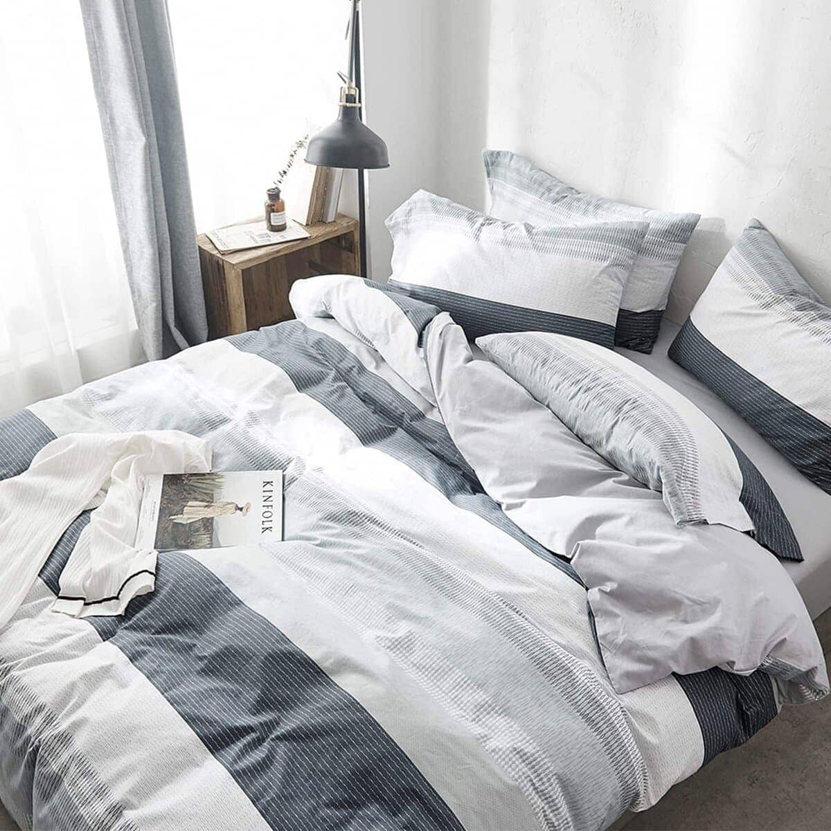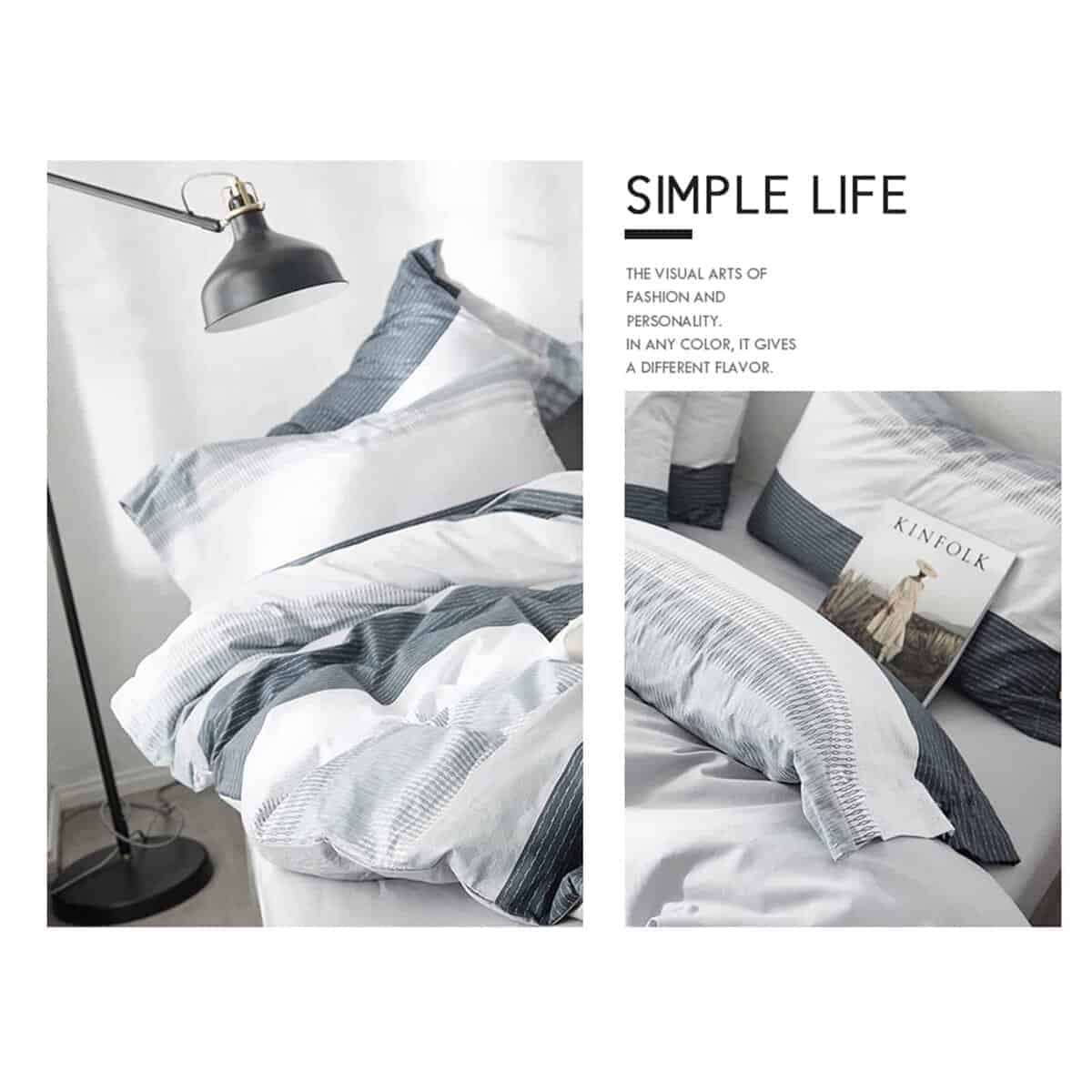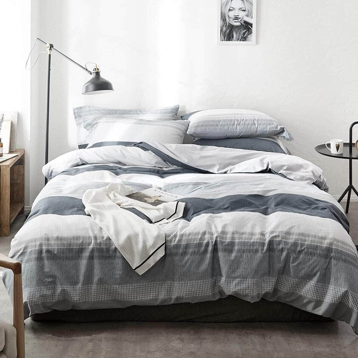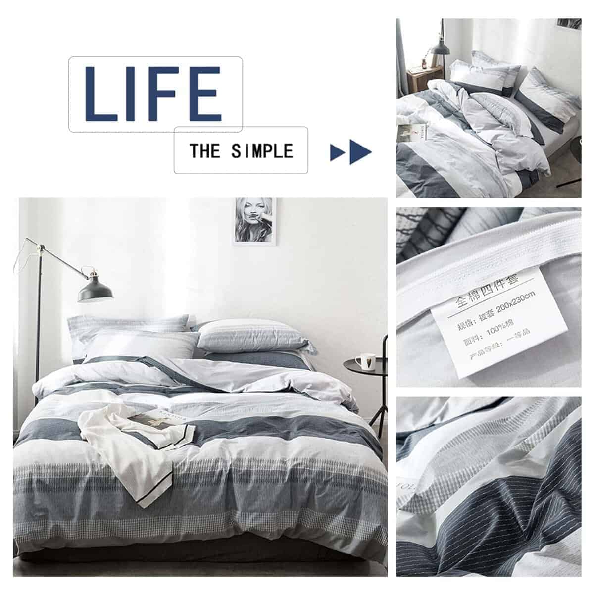 1. CÓMODO: Funda de Edredón a Rayas Moderna Reina, simplemente decora tus habitaciones, algodón premium transpirable, adecuado para adultos y niños, niños niñas mujeres, estudiantes, colegios, un lindo/cálido/regalo de Navidad para cualquier día especial/aniversario, etc. 2. 3 Piezas HighBuy Juego de Funda de Edredón Reina de Gingham Suave y Ligero(3pc) Viene con 1 Funda de Edredón Reina de Gingham (90″x90″) y 2 Fundas de Almohada (20″x26″), SIN EDREDÓN NI SÁBANA. 3. Cierre con Cremallera y Lazos en las Esquinas – La funda de edredón de gingham azul gris tiene un cierre de cremallera oculto para evitar arañazos accidentales o deslizamientos, más conveniente y duradero que el botón. Lazos en las esquinas para ayudarte a mantener tu edredón en su lugar. 4. Cuidado: se recomienda lavar antes del primer uso; lavar a máquina en frío y secar en secadora a baja temperatura; no usar lejía; secar en secadora, calor bajo; no limpiar en seco. 5. 100% SATISFACCIÓN: Devolución del 100% del dinero, ofrecemos una garantía de satisfacción de 30 días; servicio al cliente 24 horas al día, los 7 días de la semana, si tienes alguna preocupación, no dudes en contactarnos