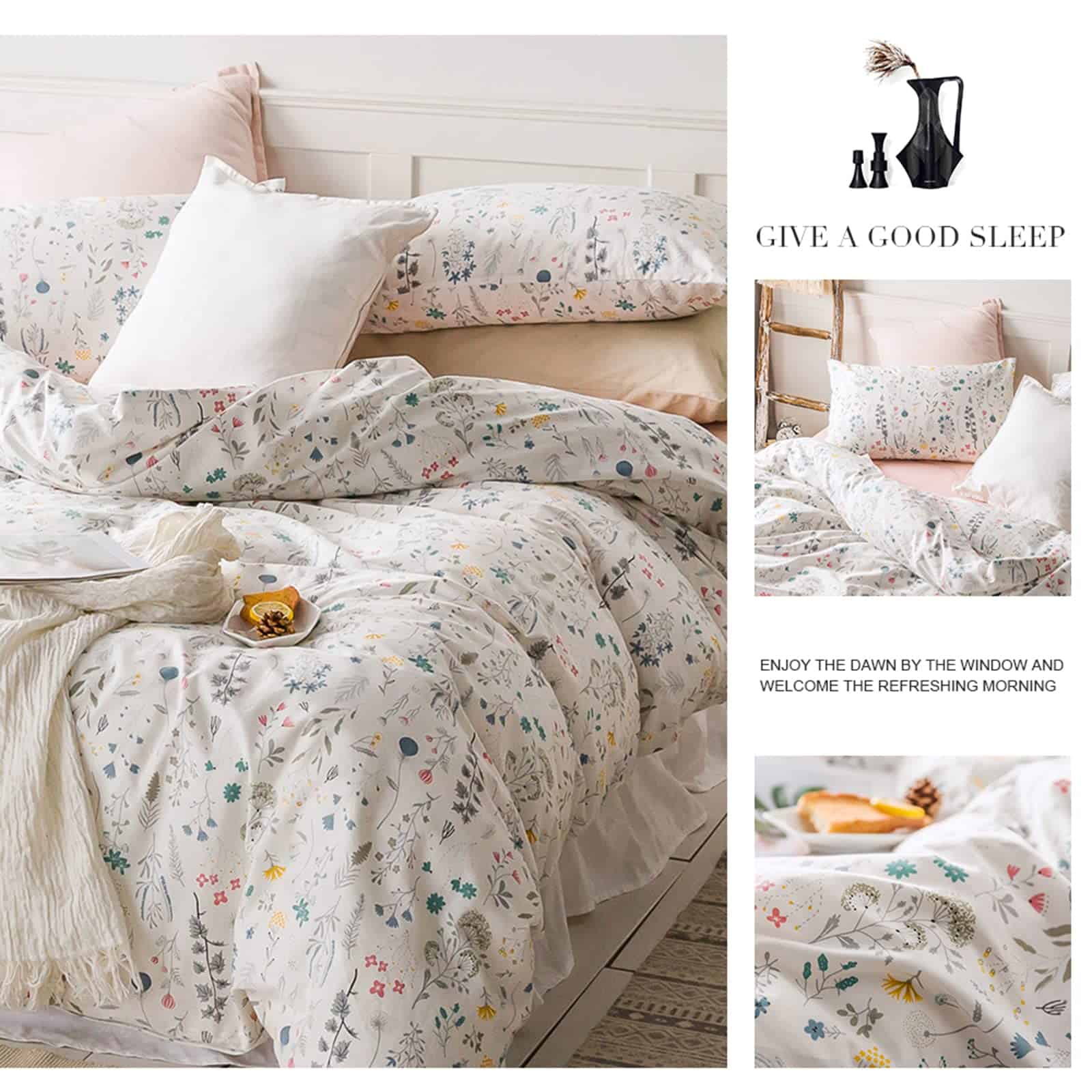 1. Cómodo: Juego de funda nórdica con diseño de jardín Shabby Chic con estampado floral boho, simplemente decora tus habitaciones, además es un regalo perfecto para el Día de Acción de Gracias, Bodas, Cumpleaños, Navidad, Año Nuevo y otros aniversarios especiales. 2. Ropa de cama Cottagecore 3 piezas juego de ropa de cama floral de granja incluye 1 funda nórdica tamaño Queen (90″ x 90″) + 2 fundas de almohada (20″ x 26″), no incluye relleno de edredón o sábana. 3. Funda de Edredón Suave: El juego de funda de edredón estético proporciona una superficie fresca y suave para dormir. Regalo adecuado para mujeres, hombres, adolescentes, niños, niñas, niños pequeños, guardería, amigo, hijo, hija, familia. Excelente idea de regalo para el Día de las Madres, Día de los Padres, Navidad, Año Nuevo, Cumpleaños, Vacaciones o Días Especiales. 4. Instrucciones de Cuidado: Lavar a máquina por separado con agua fría. No usar lejía. Secar en secadora – No limpiar en seco. 5. AJUSTE FÁCIL: Juego de funda nórdica con estampado floral para todas las estaciones, material de algodón ultra suave, transpirable y confortable, brindándote una excelente noche de sueño. El cierre de cremallera es fácil de poner y quitar, con 4 lazos en las esquinas para mantenerlo en su lugar mientras duermes.