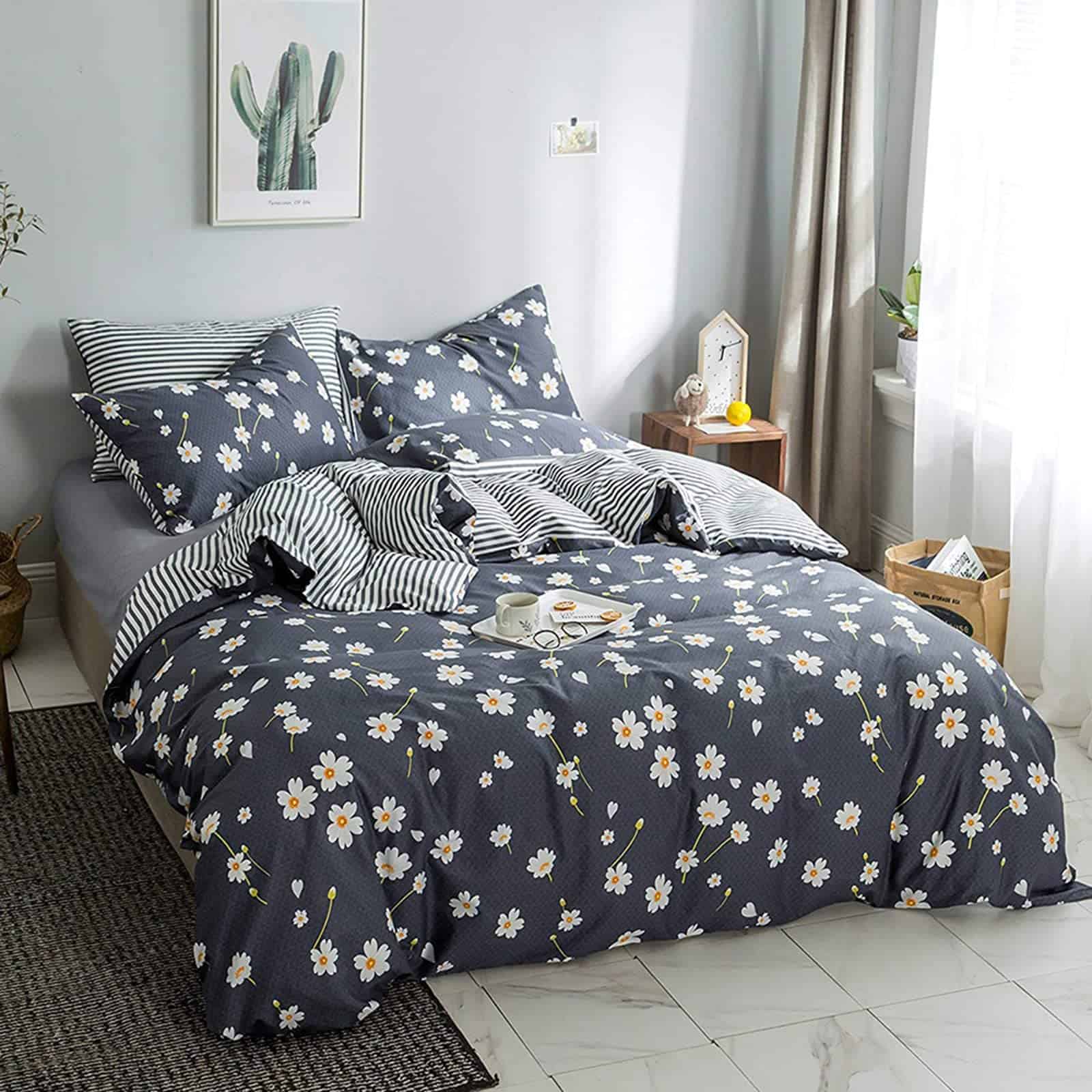 1. Colección de ropa de cama estética tamaño queen con diseño reversible, funda nórdica de boho con estampado floral y patrón a rayas, creando un aspecto de lujo para tu dormitorio. 2. Juego de Ropa de Cama Floral Tamaño Queen Boho Funda de edredón 90″ x 90″ – 2 Fundas de Almohada 20″ x 26″ ; SÁBANA AJUSTADA A JUEGO, buscar ASIN: B075C8PL2W ; JUEGO DE FUNDAS DE ALMOHADA A JUEGO, buscar ASIN: B07BXJNFWP. 3. Regalo: la lujosa colección de ropa de cama floral súper suave de HIGHBUY Hotel es un regalo adecuado para mujeres, hombres, adolescentes, niños, niñas, bebés, amigos, hijos, hijas, familiares. Excelente idea de regalo para el Día de la Madre, Día del Padre, Navidad, Año Nuevo, Cumpleaños, Vacaciones o Días Especiales. 4. Lavar a máquina en agua fría por separado. No usar lejía. Secar en secadora – No lavar en seco. 5. AJUSTE FÁCIL – Juego de funda nórdica con estampado floral para todas las estaciones, material de algodón ultra suave, transpirable y cómodo, que te proporciona un sueño súper acogedor y una buena noche de descanso. El cierre con cremallera es fácil de poner y quitar, con 4 lazos en las esquinas para que permanezca en su lugar mientras duermes.