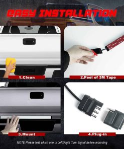 4. SIN NECESIDAD DE PERFORAR O CORTAR ¿No tiene un conector de 4 pines en su vehículo Agregue uno. Con el conector hembra de 4 pines incluido y 59″ de cableado, puede conectarlo en la parte posterior de su enchufe de 7 pines o arnés del vehículo sin dañar o realizar una conexión fija en la barra de luz. AVISO: Antes de la instalación, pruebe para distinguir las señales de giro izquierda y derecha, y asegúrese de que la superficie de pegado esté limpia para reducir problemas de instalación innecesarios.