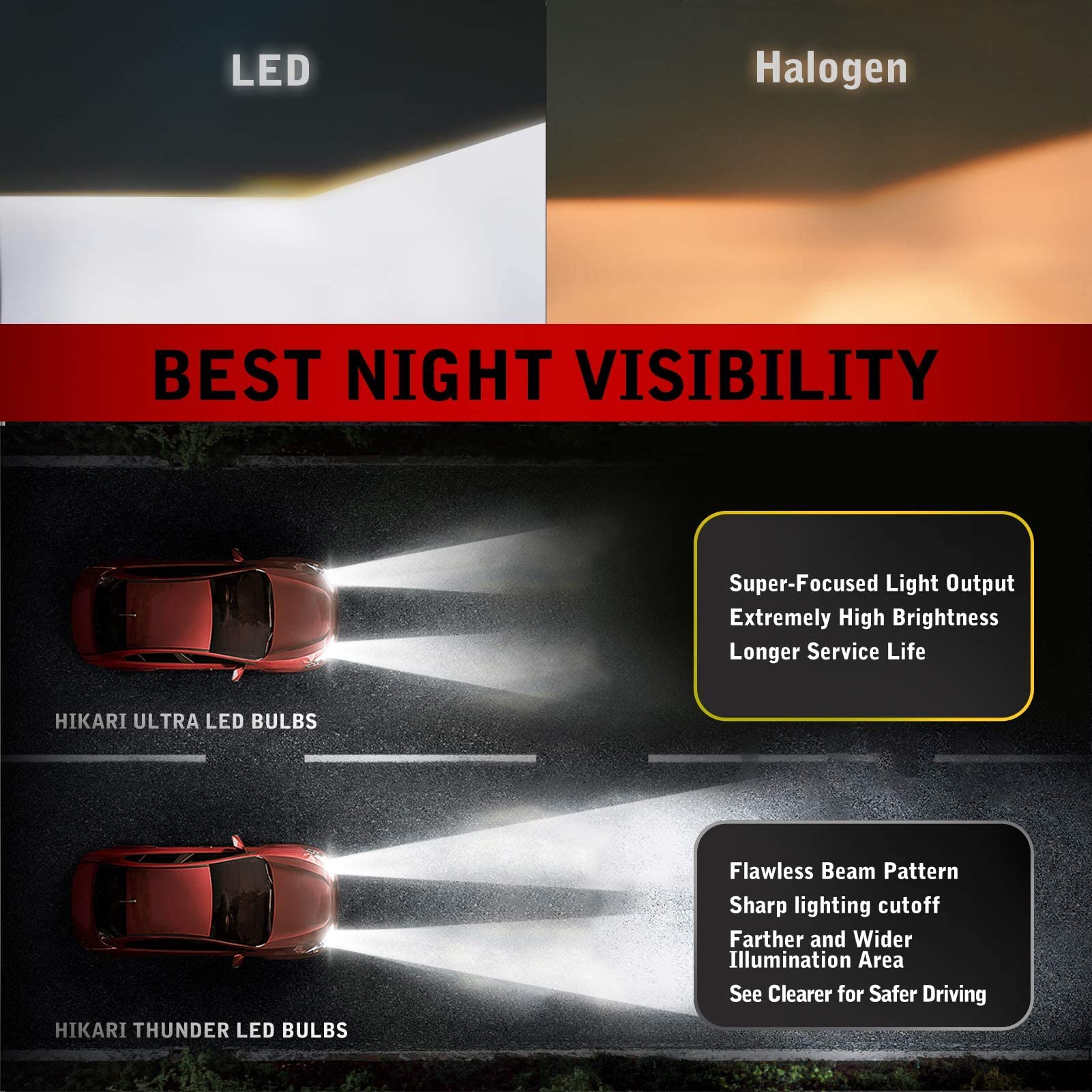 2. SERIE ULTRA DE LA TECNOLOGÍA MÁS AVANZADA H11/H8/H9 de Hikari, serie Ultra de la tecnología más avanzada, chips LED Prime X, +270% más brillante que el halógeno. Salida de luz súper enfocada, brillo extremadamente alto, vida útil más larga.