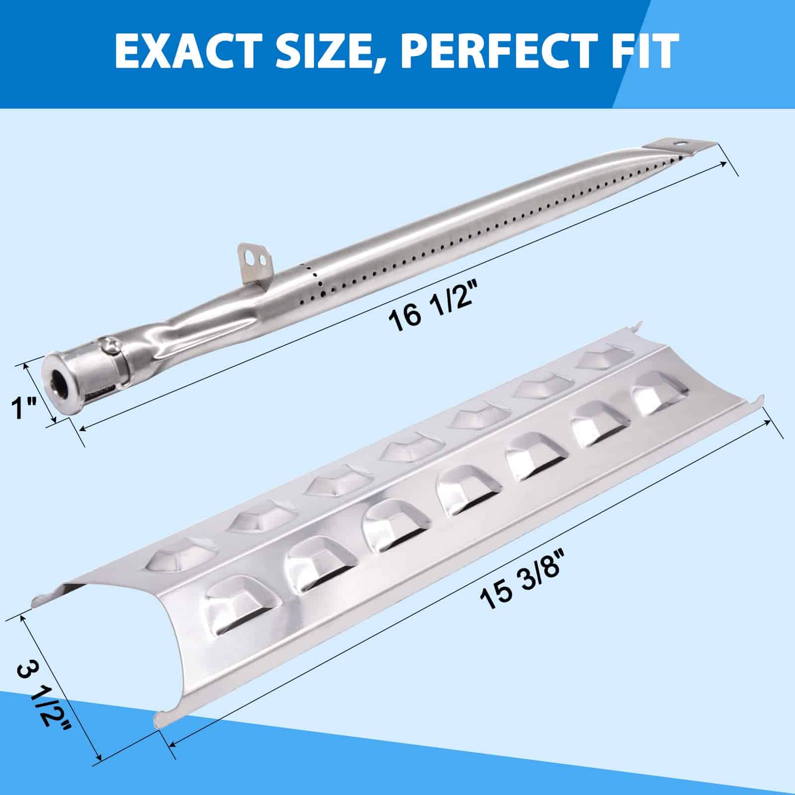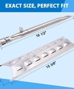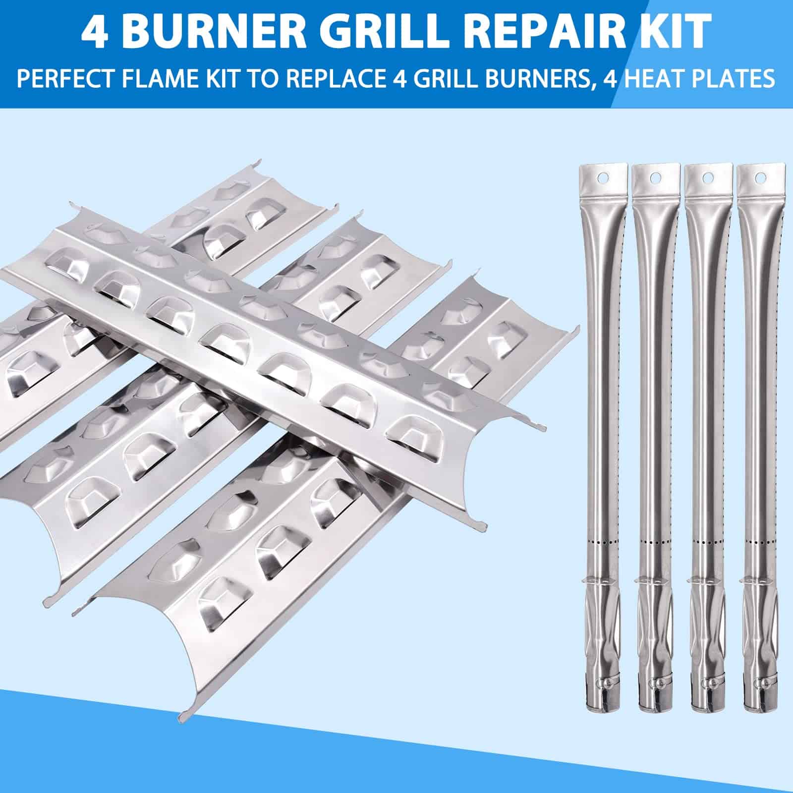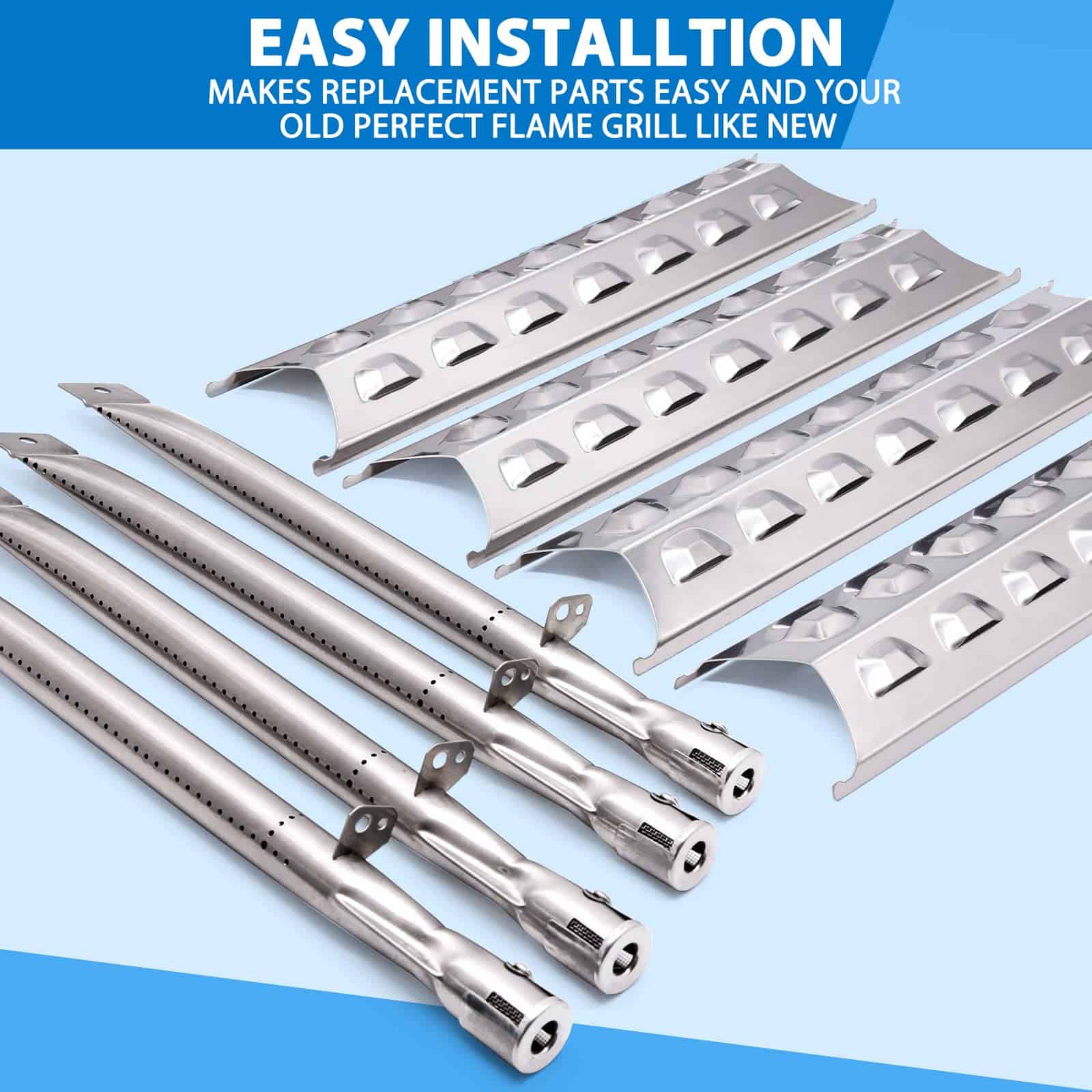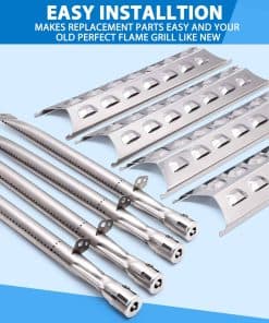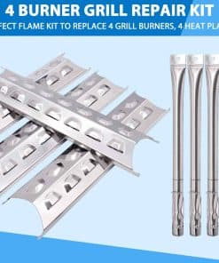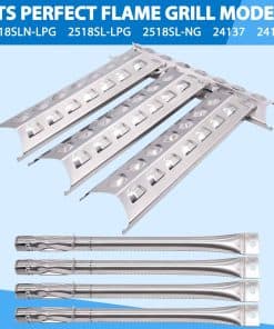 Renueva las piezas de tu parrilla de gas Perfect Flame 2518SLN-LPG 2518SL-LPG 2518SL-NG con estas piezas de repuesto para parrilla. Refresca la apariencia y el rendimiento de las piezas de tu parrilla, para mejorar la vida útil de tu parrilla Perfect Flame. El paquete consta de 4 quemadores de parrilla de acero inoxidable y 4 protectores térmicos de acero inoxidable.