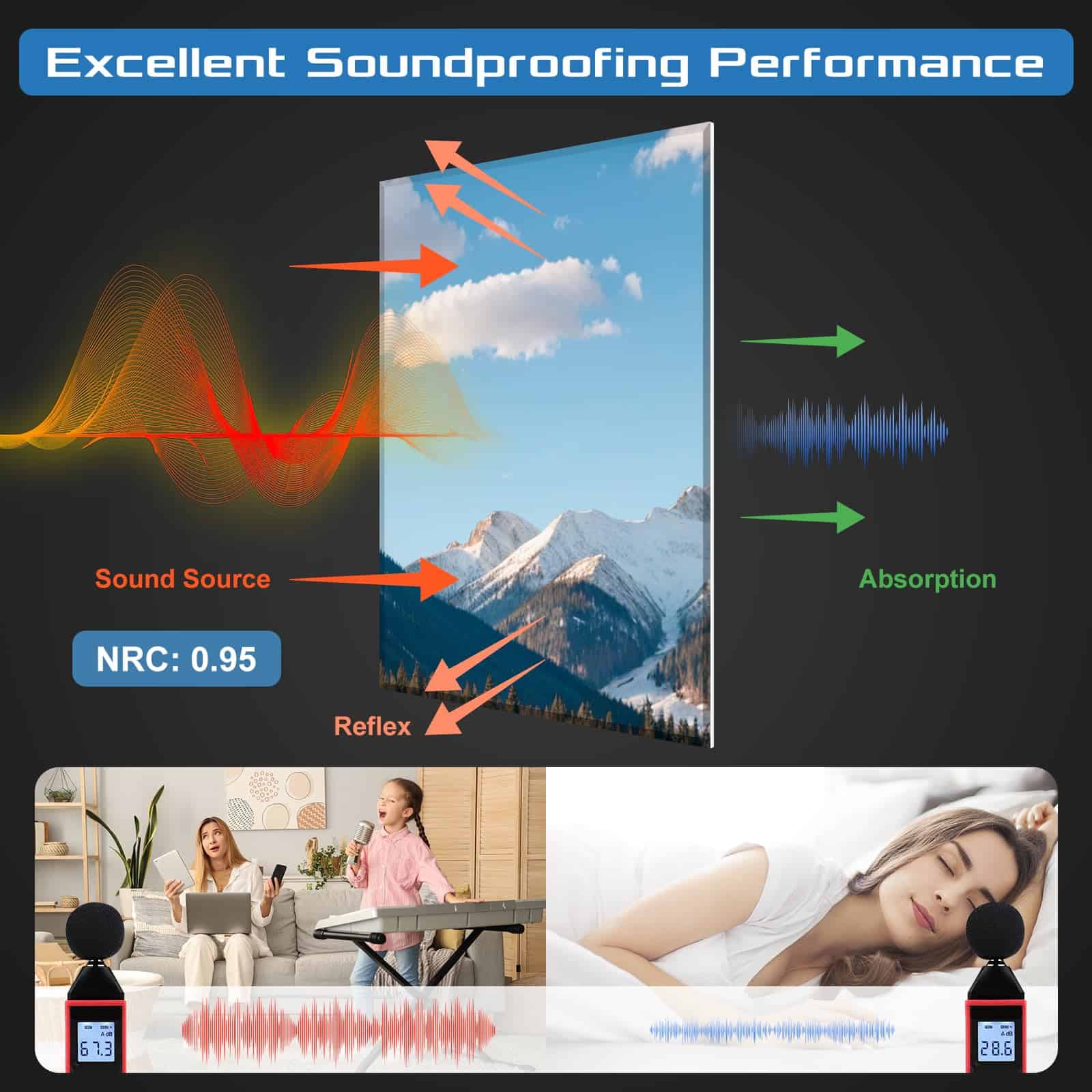 3. Decoración de Pared: Lo que te permite dejar innumerables hermosos recuerdos en un ambiente confortable. El diseño elegante funciona también como paneles acústicos artísticos en tu espacio favorito. Puede ser utilizado en dormitorio, cuarto de juegos, estudios de grabación, salas de cine en casa, apartamentos y oficinas, etc.