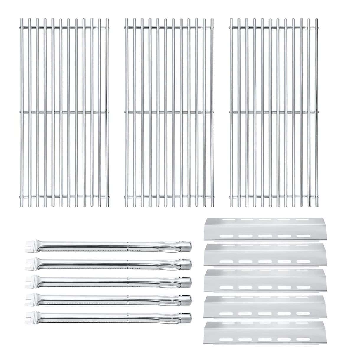 5. Kit de reparación incluido: 5 quemadores, 5 placas de calor y juego de 3 rejillas de cocina de acero inoxidable sólido. Por favor, verifique dos veces las dimensiones y el modelo de su parrilla antes de realizar el pedido.