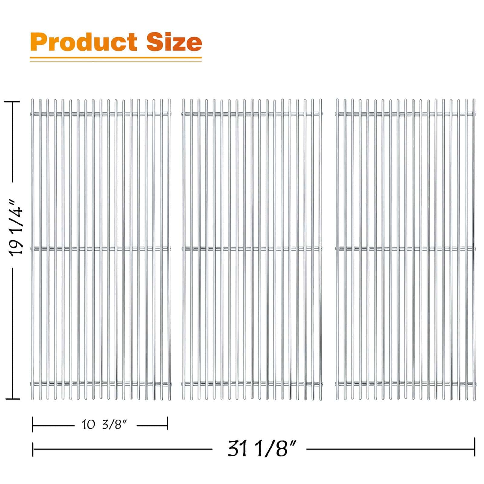 2. Detalles del producto: Dimensiones del quemador: 17″ x 1″, Material: Acero inoxidable; Dimensiones de la placa de calor: 16 7/8″ x 5 1/8″, Material: Acero inoxidable. Dimensiones de la parrilla de cocina: 31 1/8″ x 19 3/4″ en total; Material de la parrilla de cocina: Acero inoxidable sólido. Por favor, mida el tamaño de su parte original antes de realizar el pedido. Esta combinación es un conjunto de 5 piezas, si necesita un conjunto de 3 piezas, busque «B00SEBTB7K».