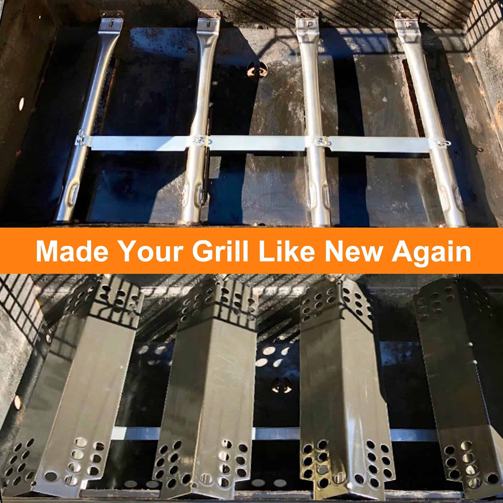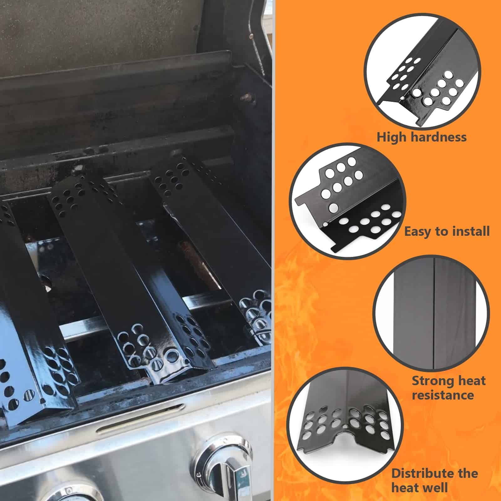4. Acero inoxidable mejorado – Resistencia a la corrosión y al calor. Protege los quemadores y evita las llamaradas, evita la exposición directa a la llama. Duran más; Extiende la vida útil de tu parrilla; Ajuste exacto para tus parrillas.